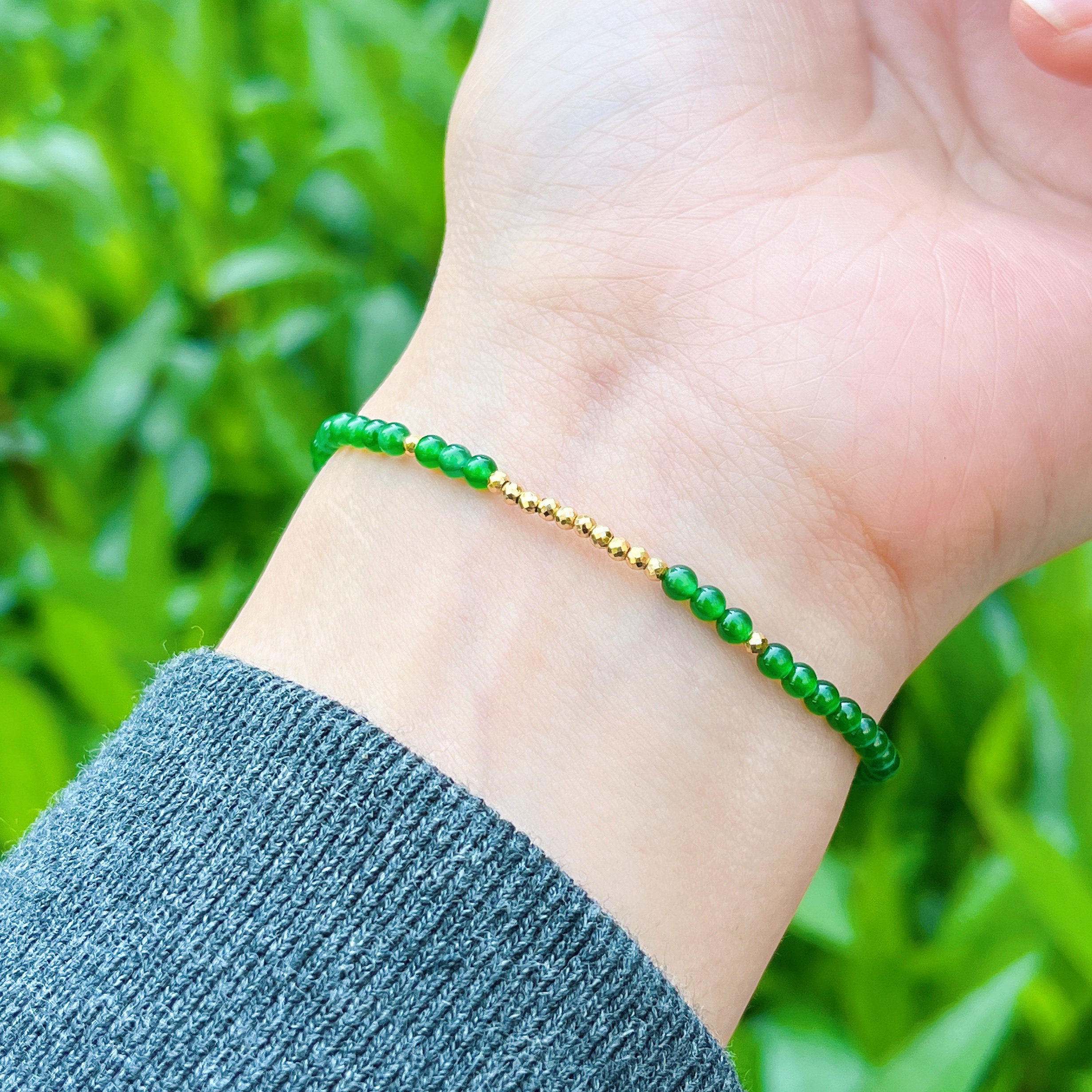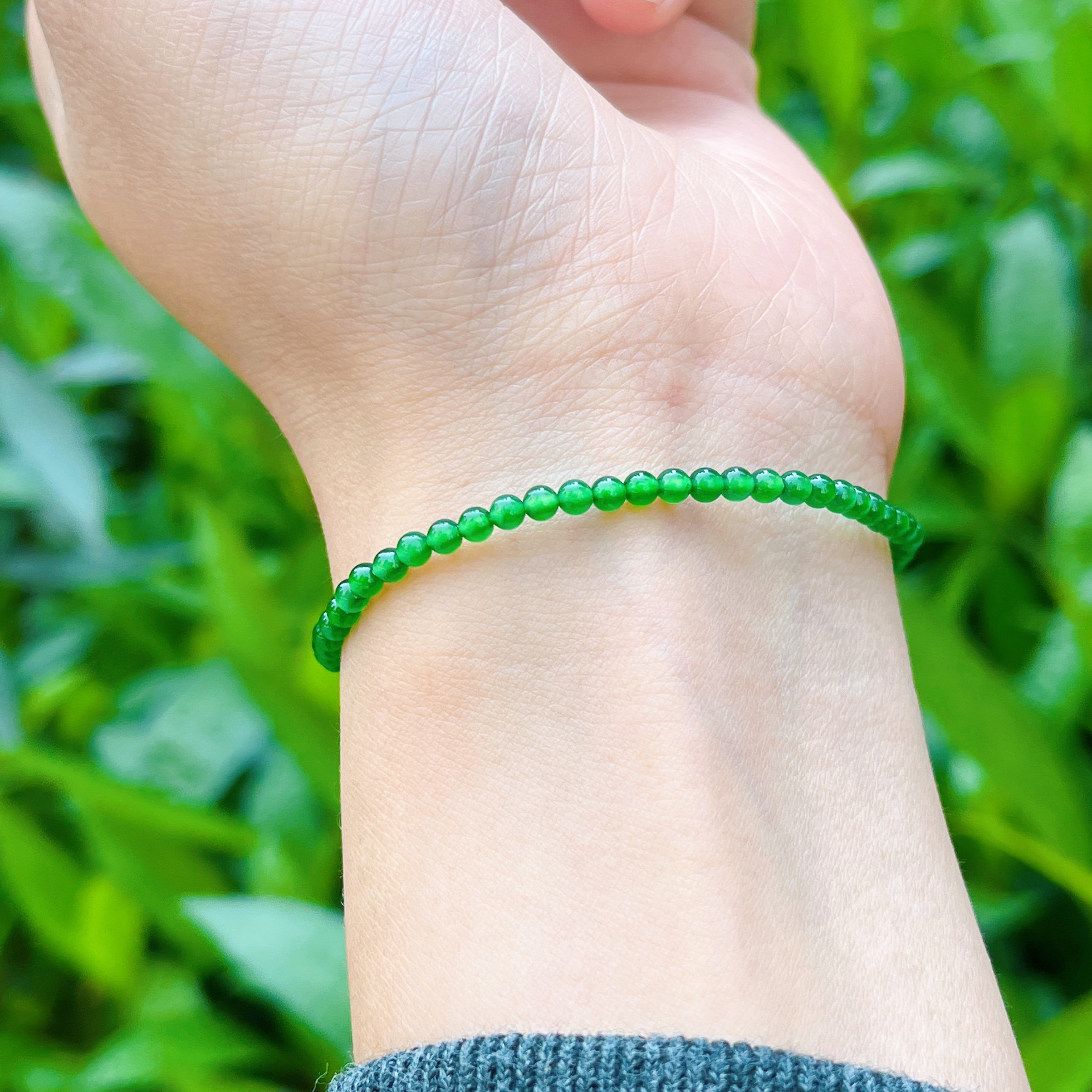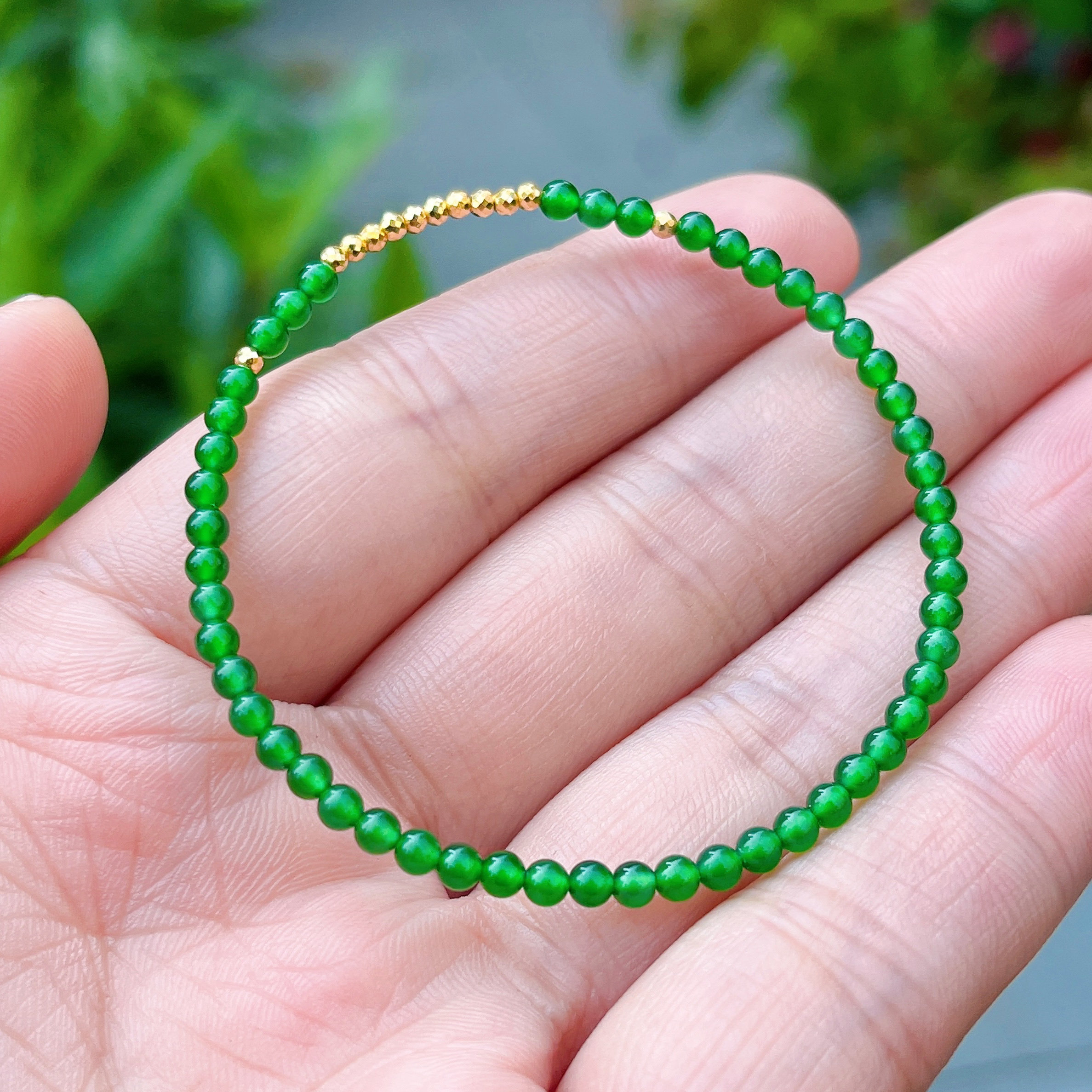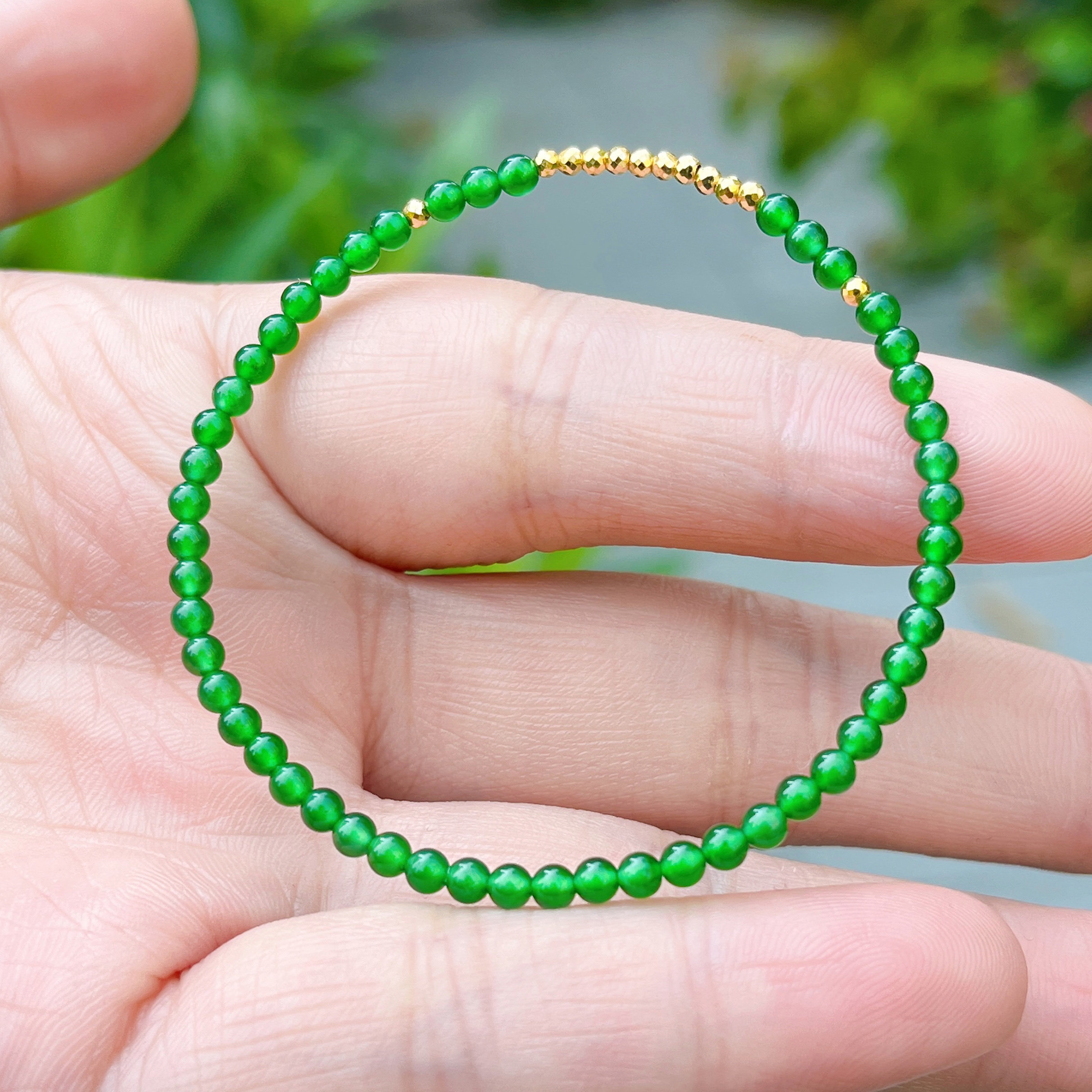 天然辣阳绿色冰种翡翠小米珠子手链串钏女款新中式可叠戴18k黄金