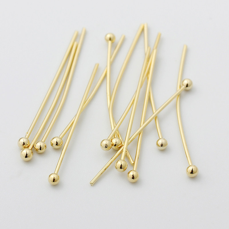 保色14K包金18K金T针9字针球针圆头针珠针平头针细针串珠diy配件