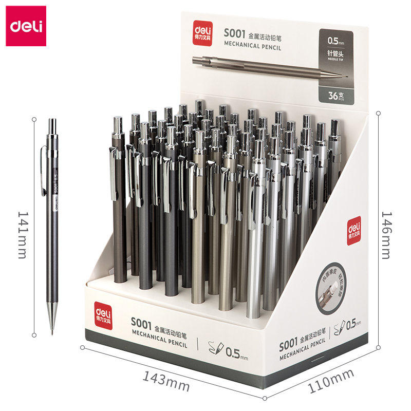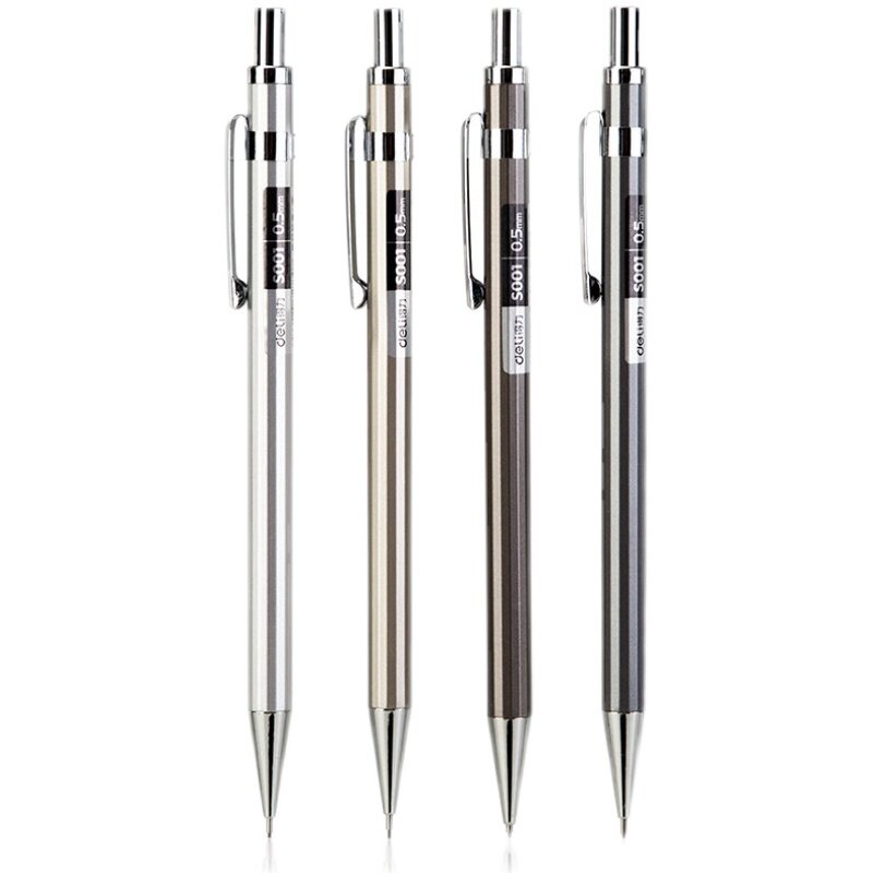 得力S001自动铅笔带橡皮擦头学生儿童不易断活动金属铅笔0.5笔芯