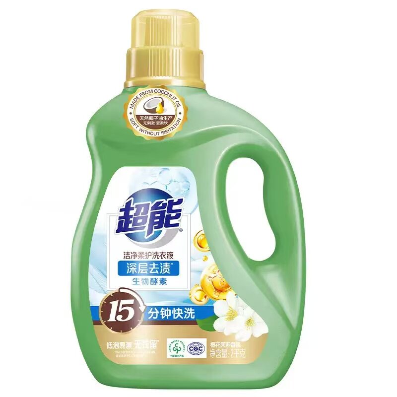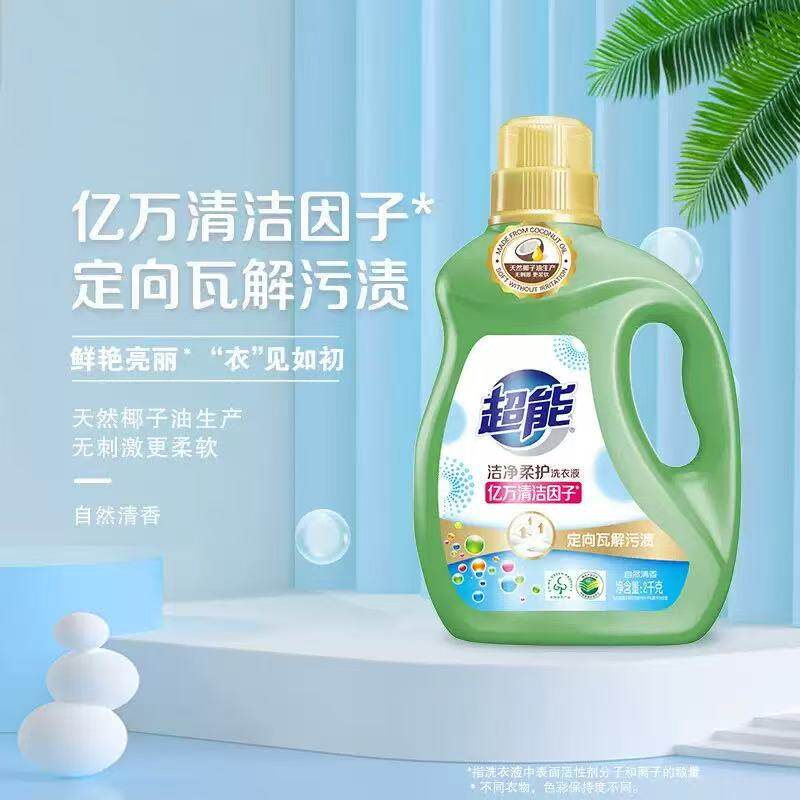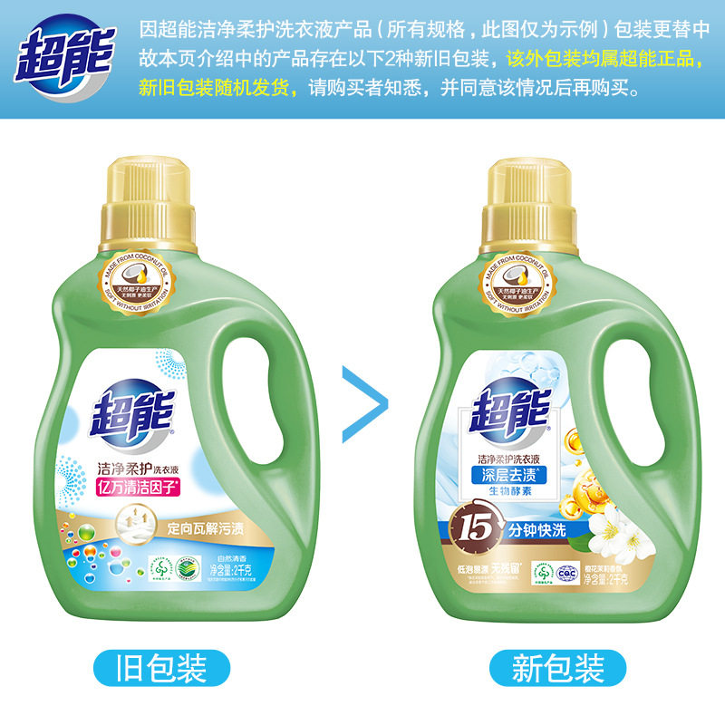 超能洁净柔护低泡洗衣液2kg香味持久促销装深层去渍整箱批正品4斤