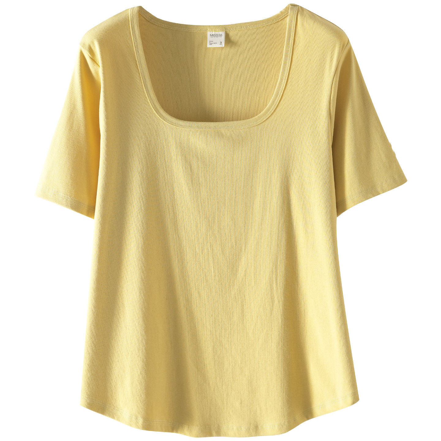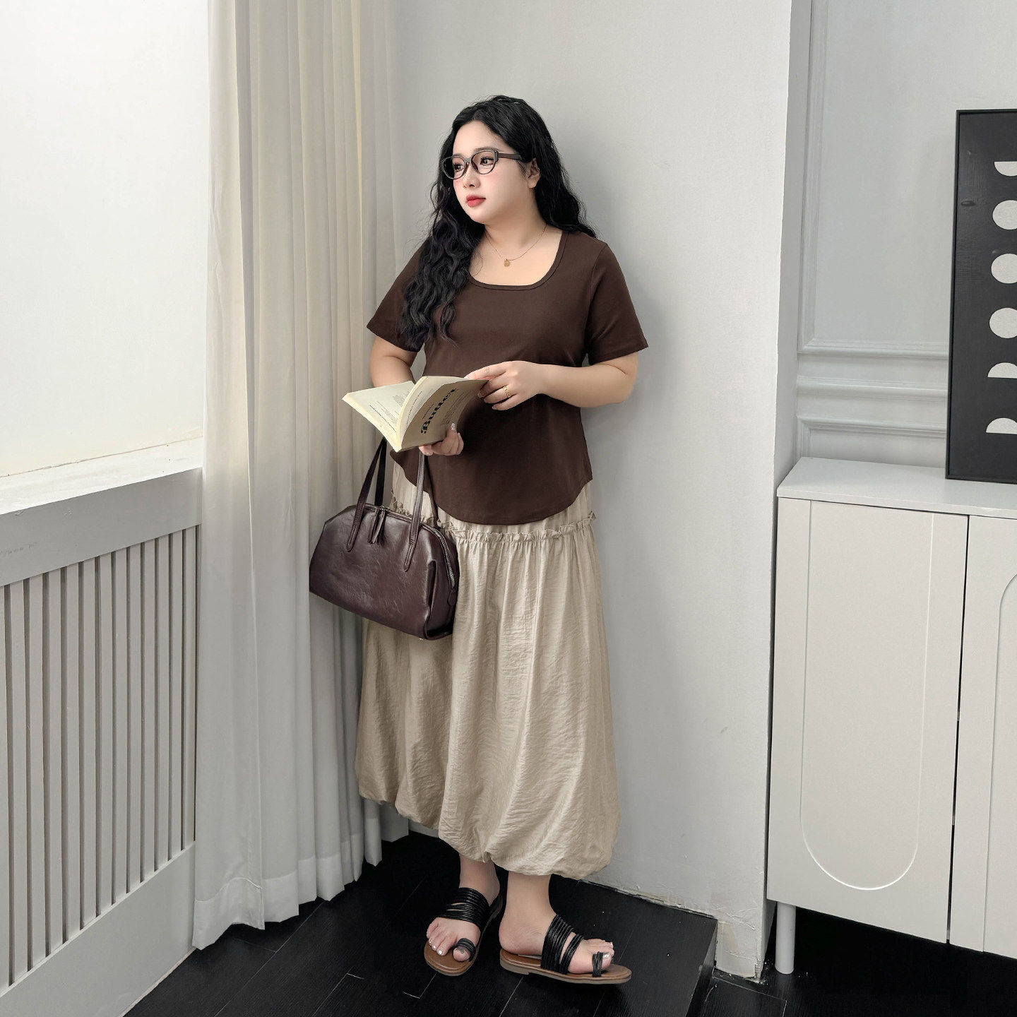 大码女装【极简不规则T】方领宽松短袖T恤夏季胖mm遮肚子显瘦上衣