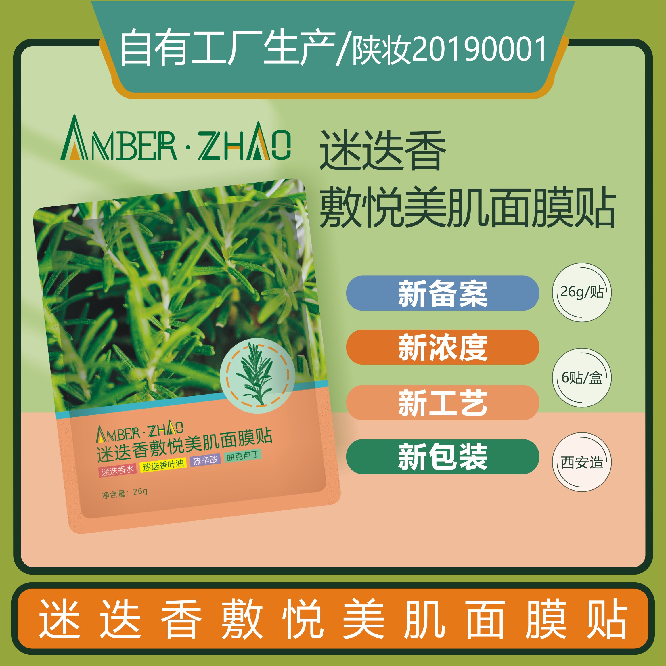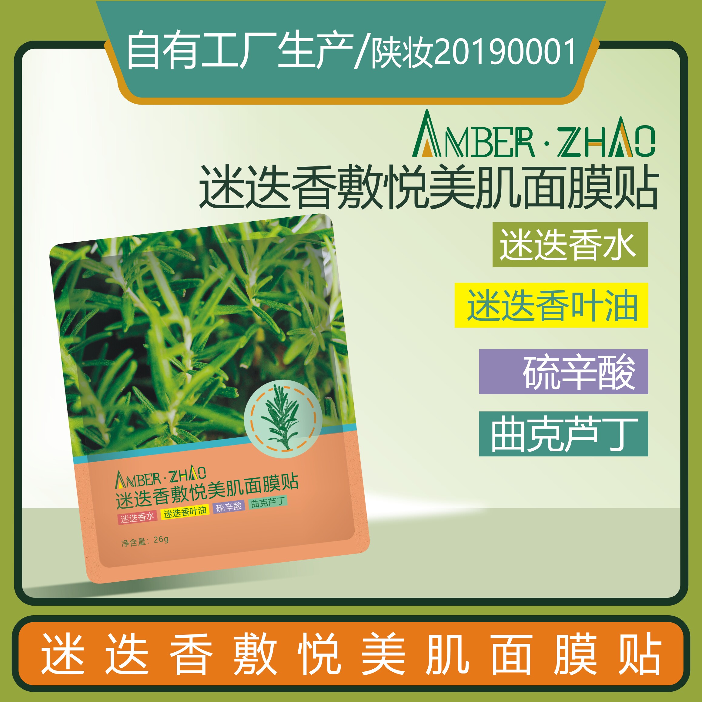 迷迭香敷悦美肌面膜贴-迷迭香水曲克芦丁保湿抚平肌肤