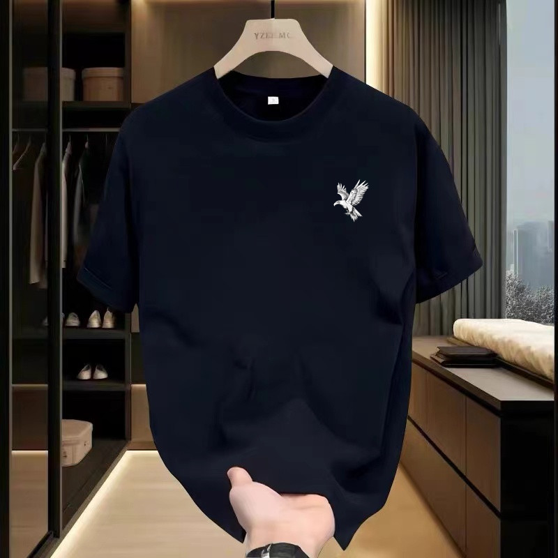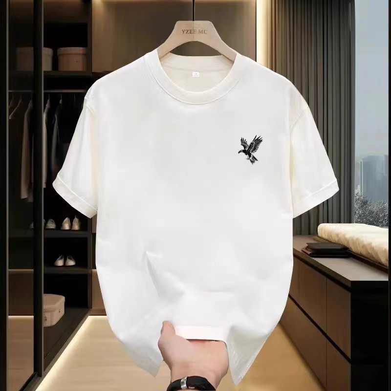 潮牌雄鹰新款重磅纯棉夏季圆领短袖T恤男休闲宽松印花情侣打底衫