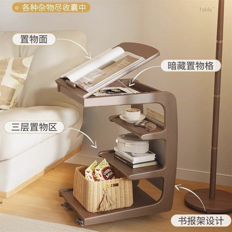 实木沙发边几可移动客厅带轮侧边柜床头置物架家用茶几小户型边桌
