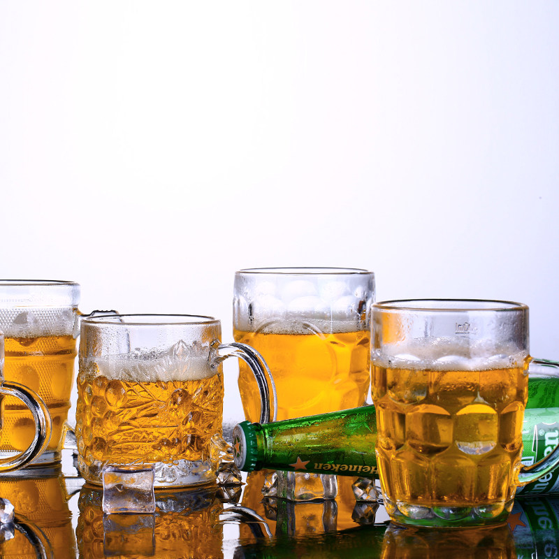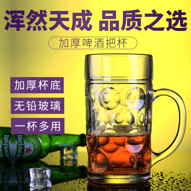 加厚带把玻璃啤酒杯KTV茶水杯 耐热超大号扎啤杯菠萝杯精酿啤酒杯