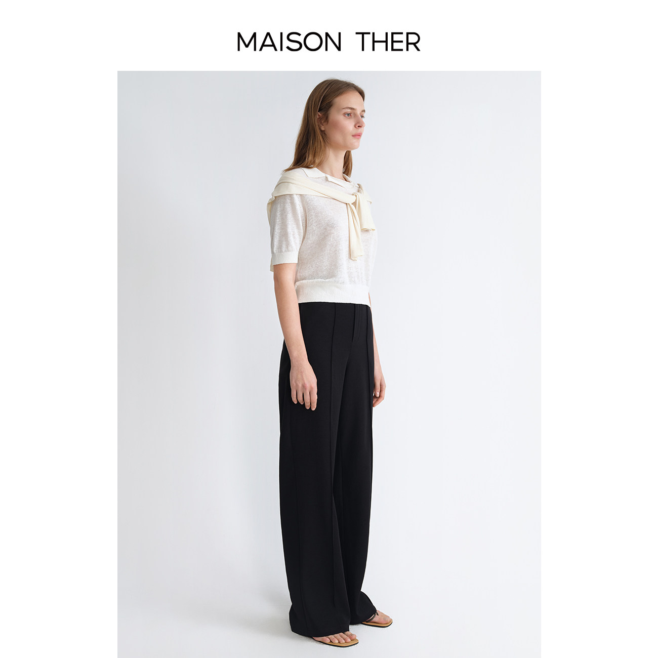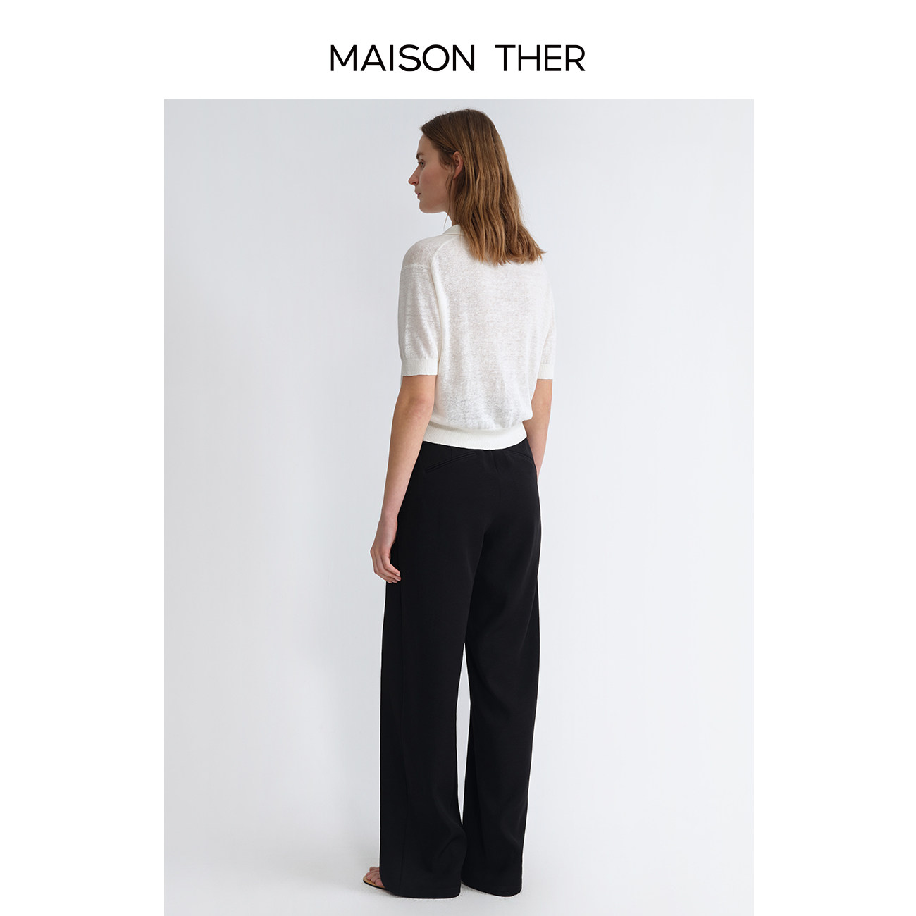MAISON THER【智感通勤】静奢老钱风100%亚麻短袖POLO针织衫白色
