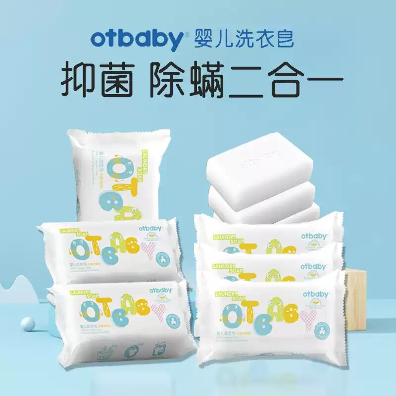otbaby艾草洁净洗衣皂除螨抑菌新生婴儿尿布皂宝宝衣物去渍bb肥皂