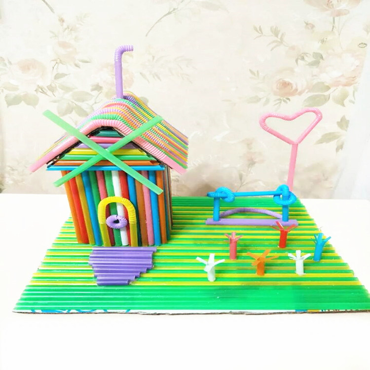 彩色吸管艺术幼儿园创意粘贴画吹画儿童创意手工diy编织制作材料