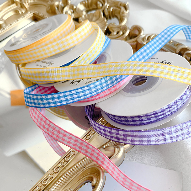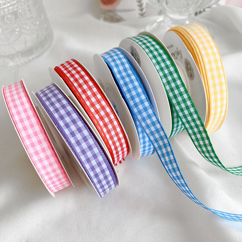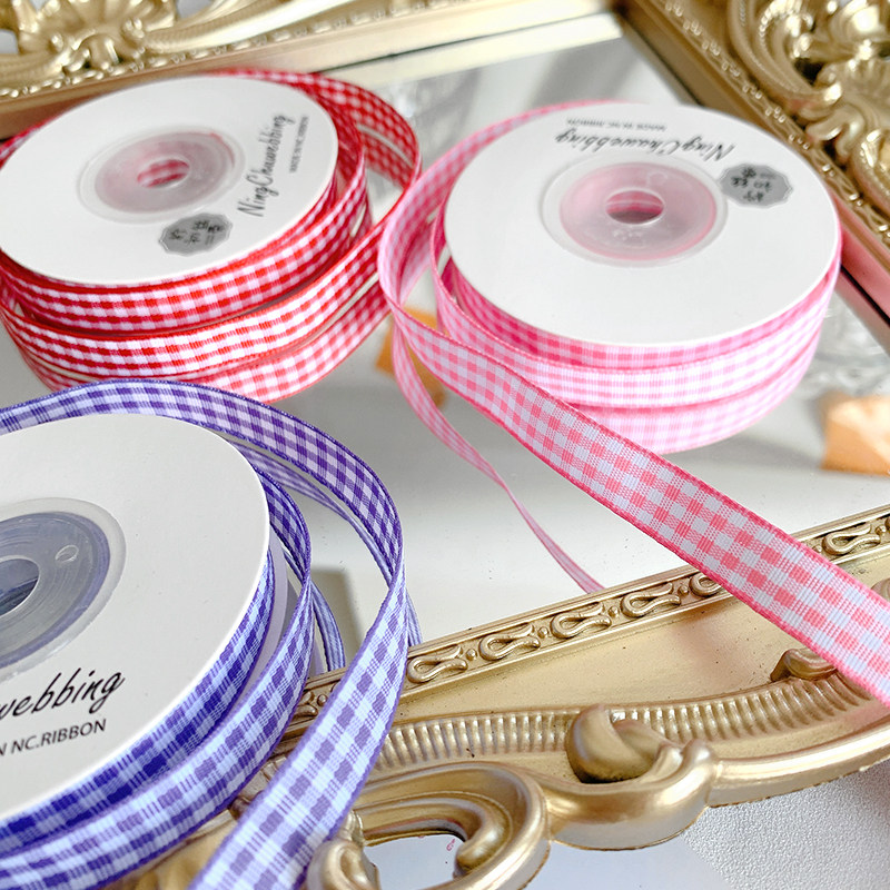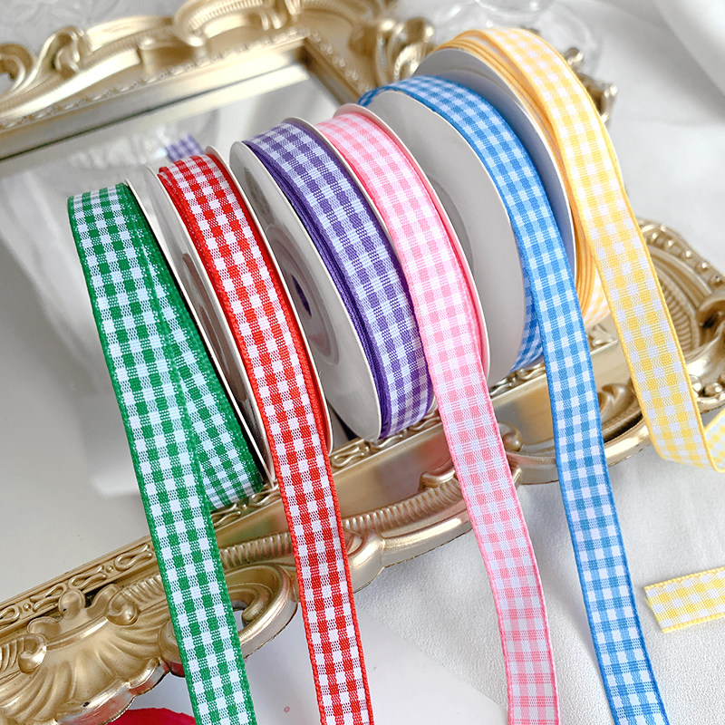 1cm格子丝带烘焙包装缎带diy手工发饰鲜花彩带花束绑带装饰材料包