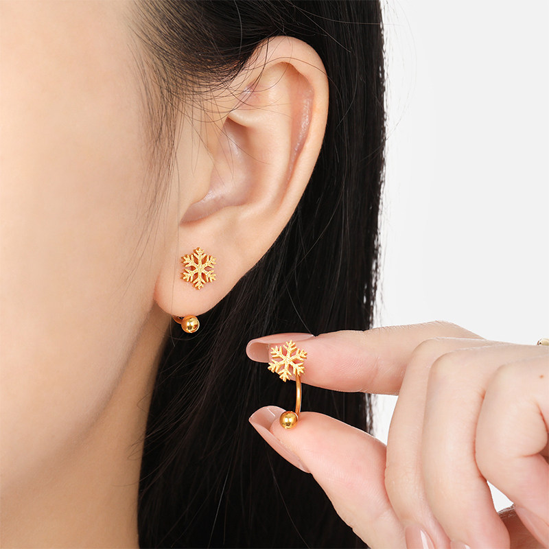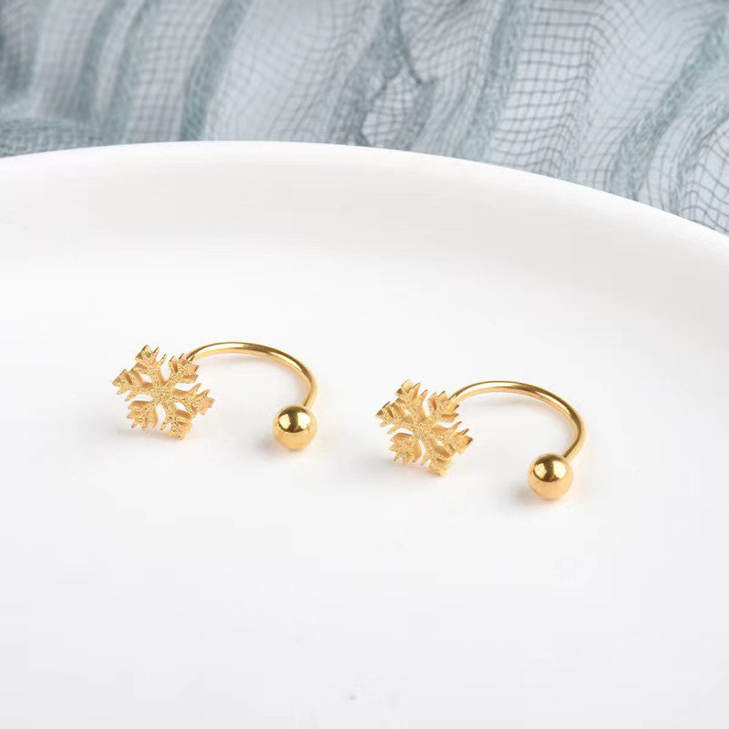 2025新款潮金银色雪花四叶草耳钉睡觉免摘养耳洞耳骨钉爆闪耳饰品