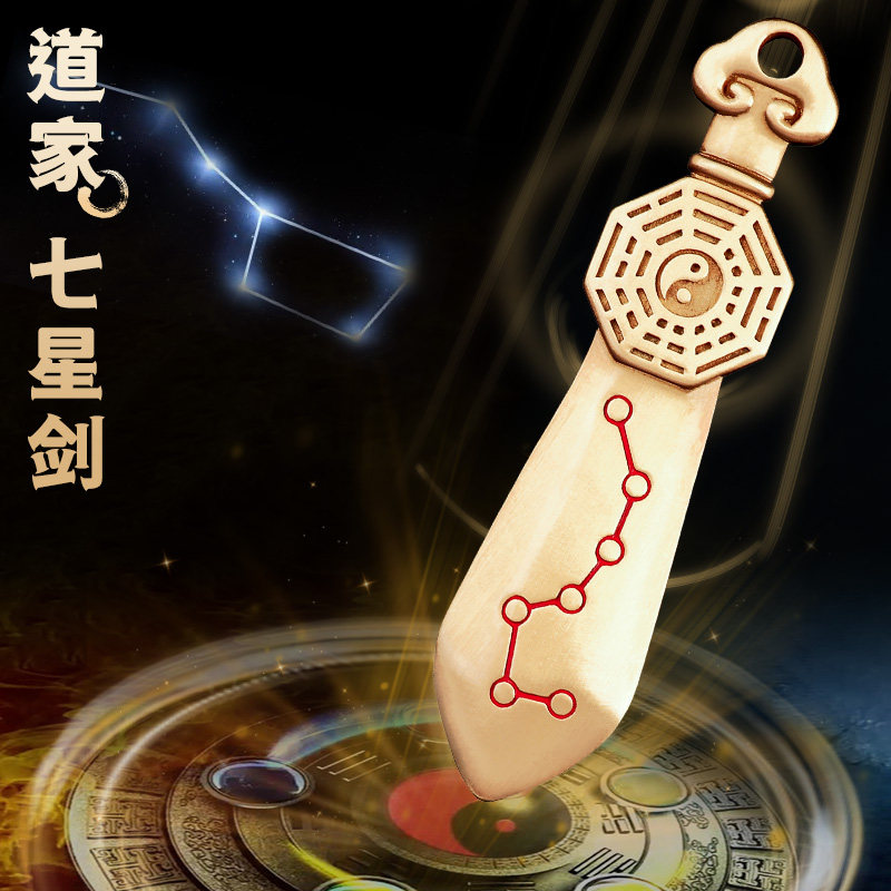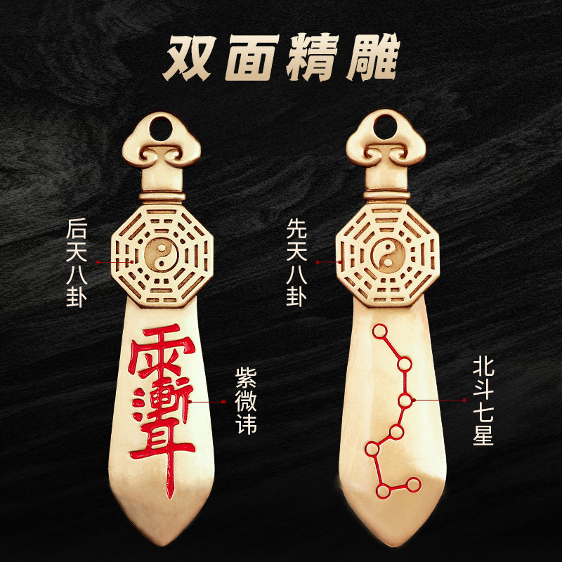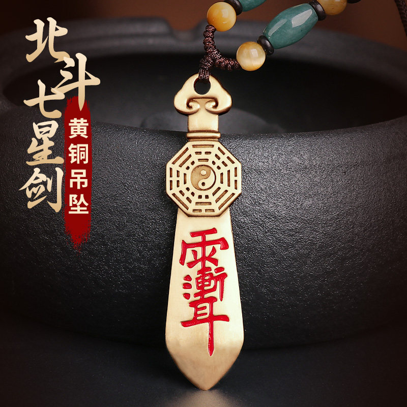 道家紫薇讳七星剑吊坠纯铜雨渐耳宝剑挂件平安太极八卦护身符项链