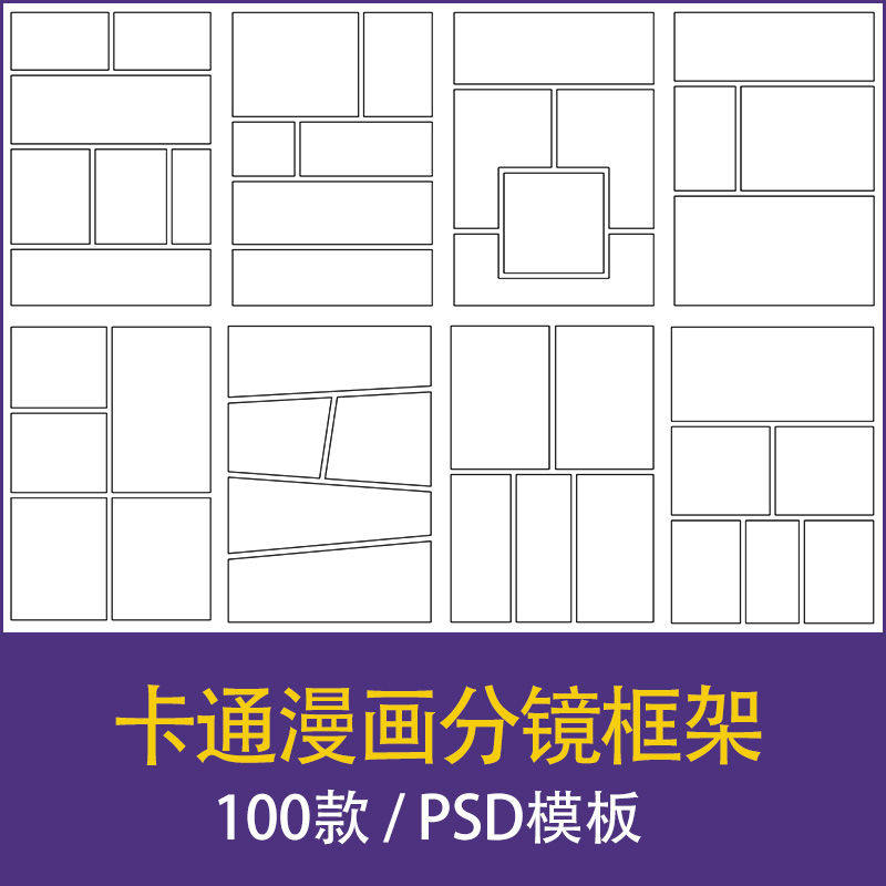 漫画卡通页面分镜框架布局拼图拼贴排版模板PSD设计素材procreate