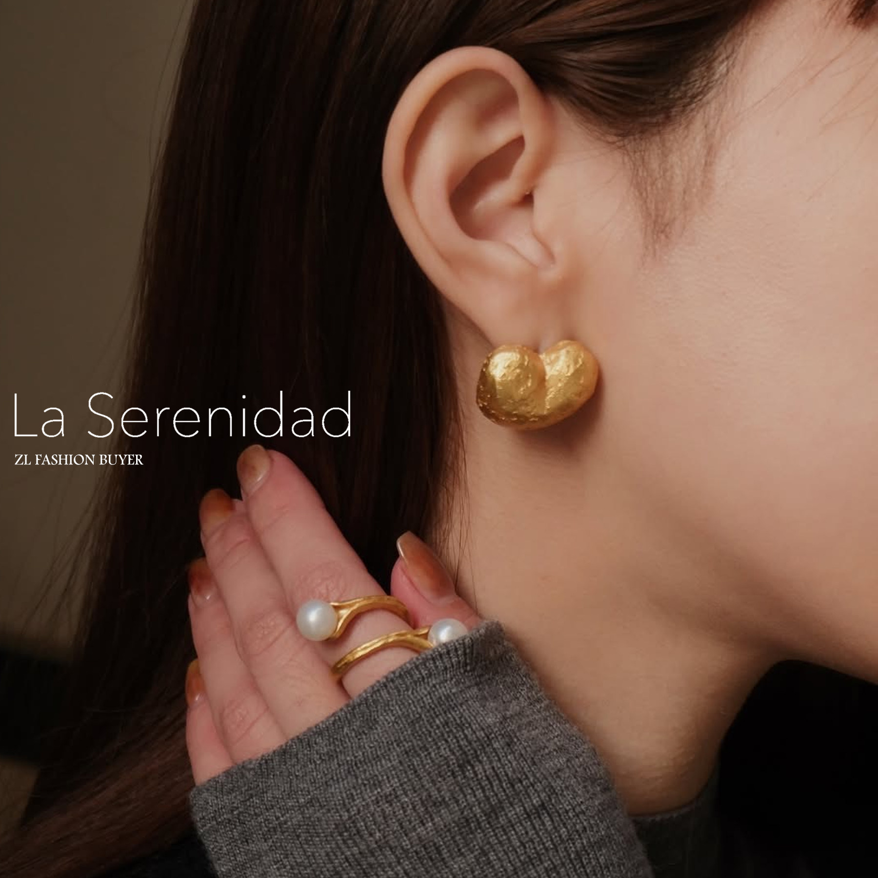 现货La Serenidad心形巧克力磨砂雾面肌理高级小众手工耳环耳夹