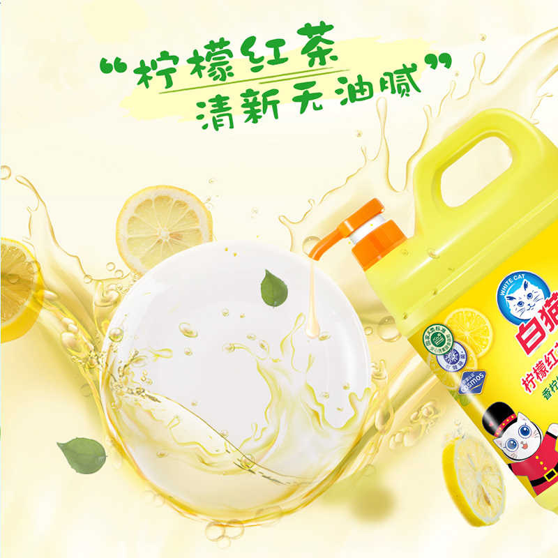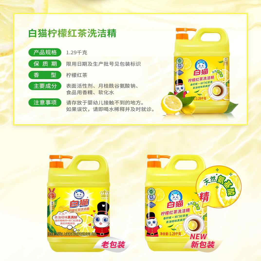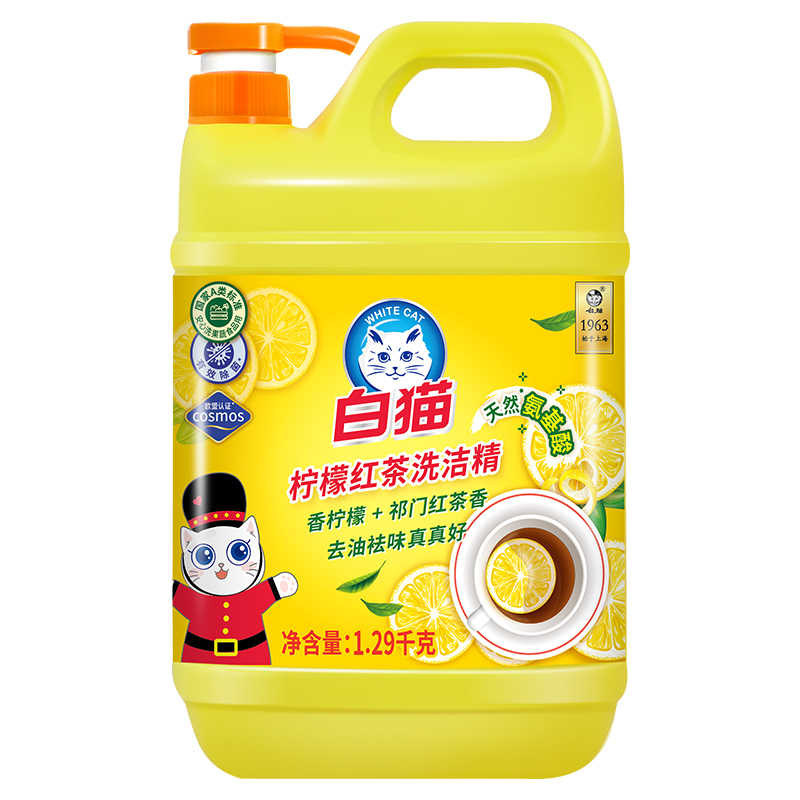 白猫柠檬红茶洗洁精大桶装1.29kg家用厨房洗涤剂洗碗果蔬去油去污