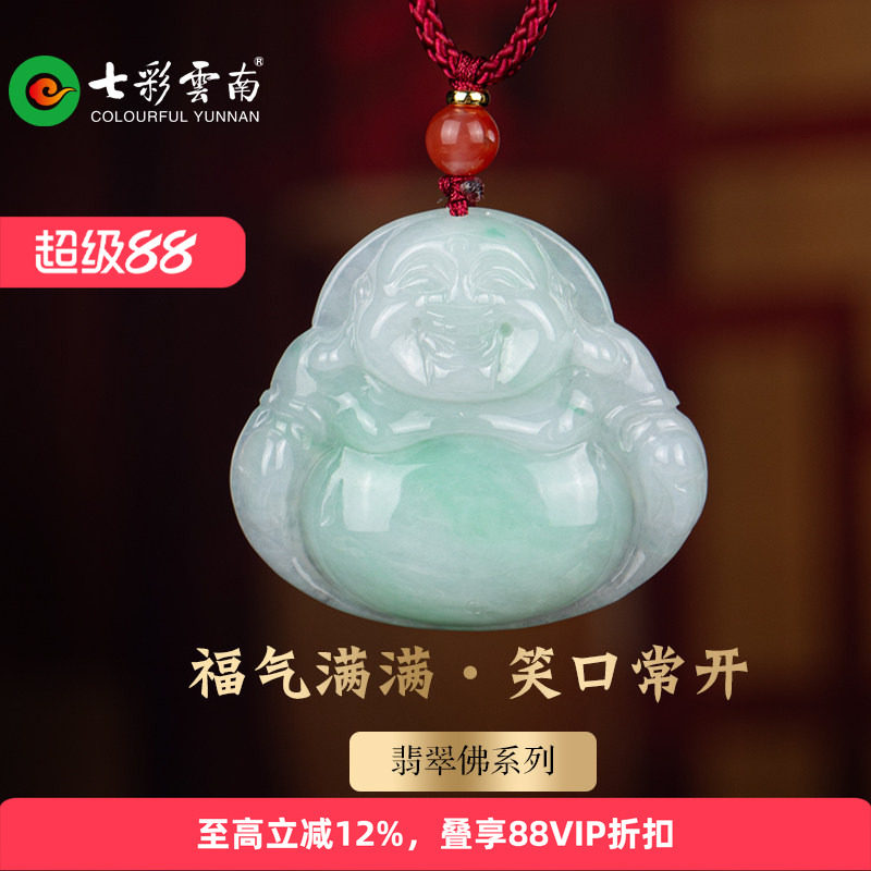 七彩云南翡翠玉佛吊坠女款精品挂件弥勒佛公精品玉石高级国风礼物