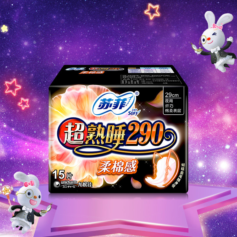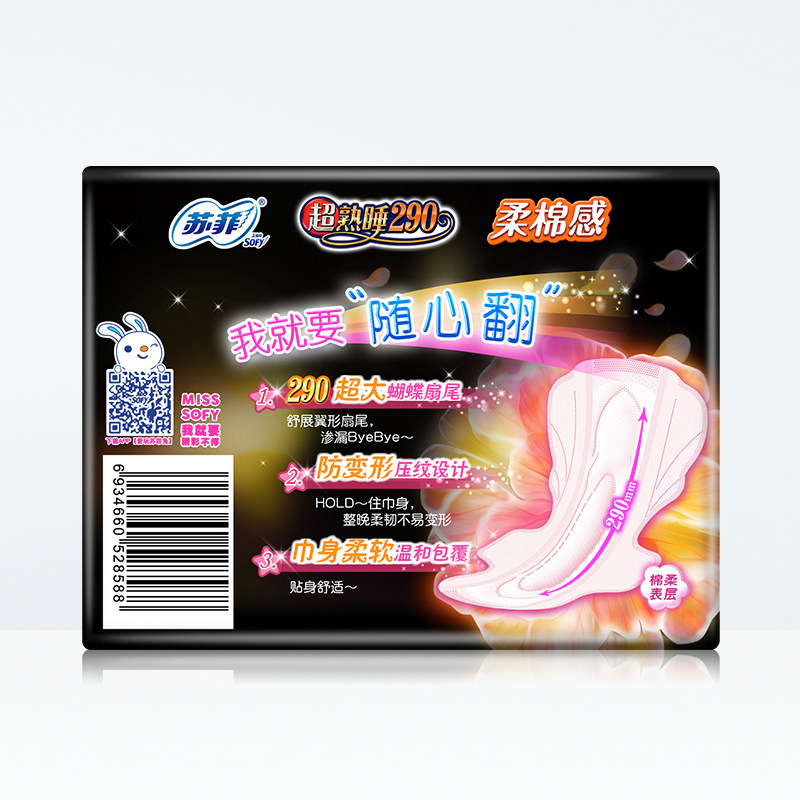 苏菲卫生巾超熟睡柔棉感护翼夜用290mm柔软贴身亲肤姨妈巾正品