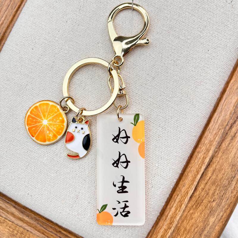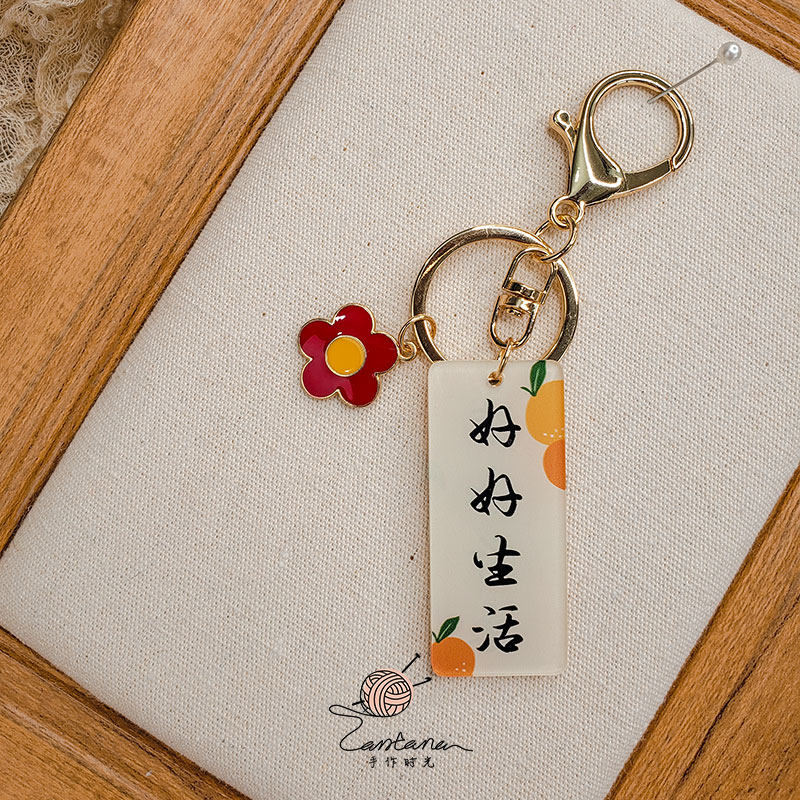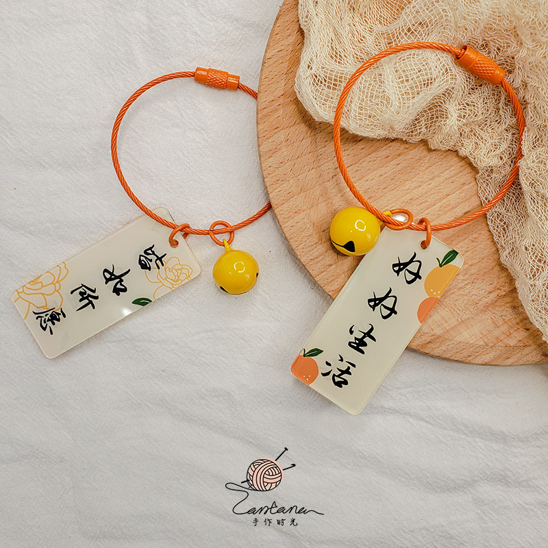 diy钥匙扣铃铛钢丝圈配件包挂件好好生活皆如所愿亚克力双面字牌