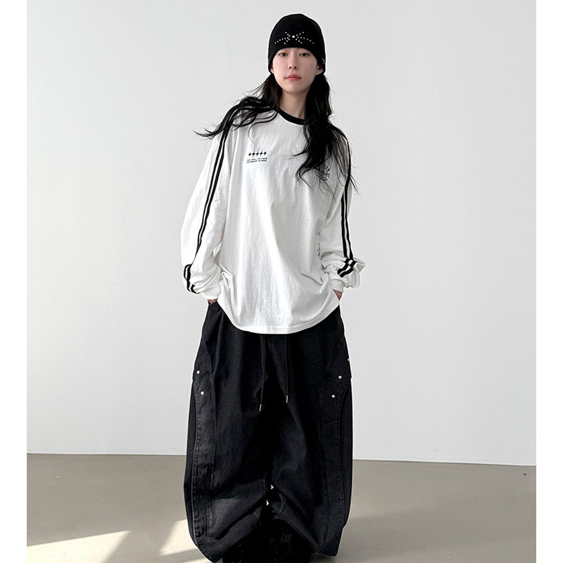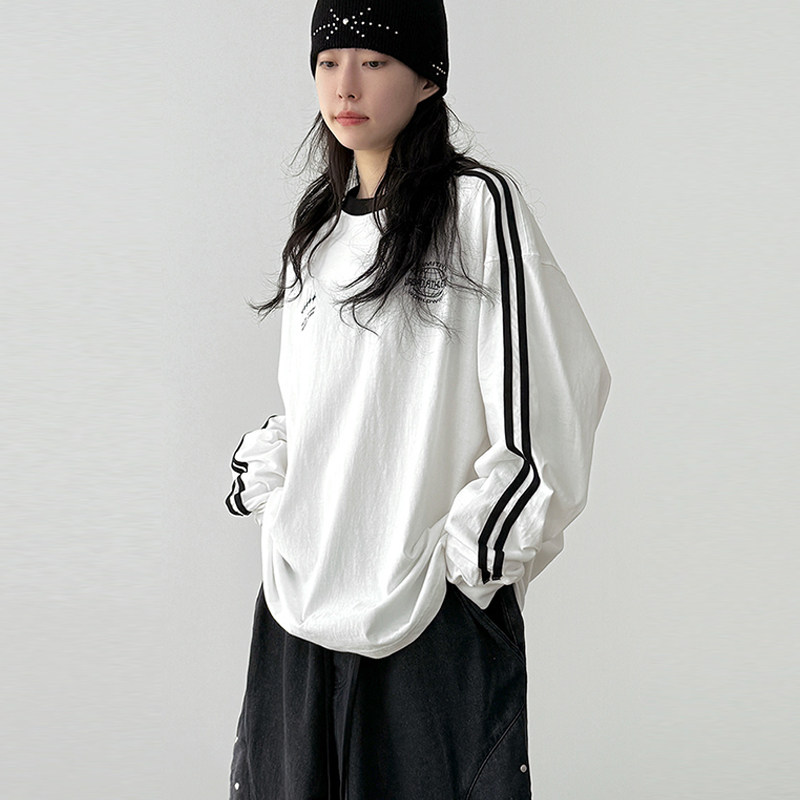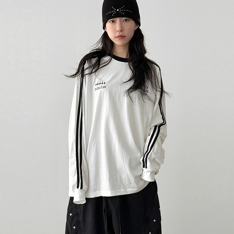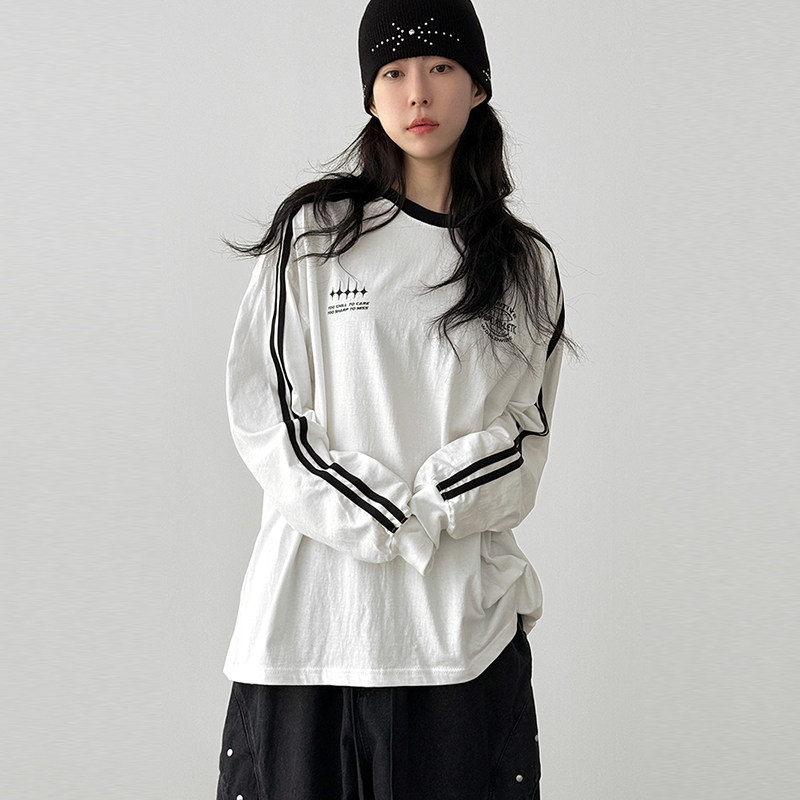 韩国代购25F/W sporty track cotton tee (unisex) 线条长袖T恤