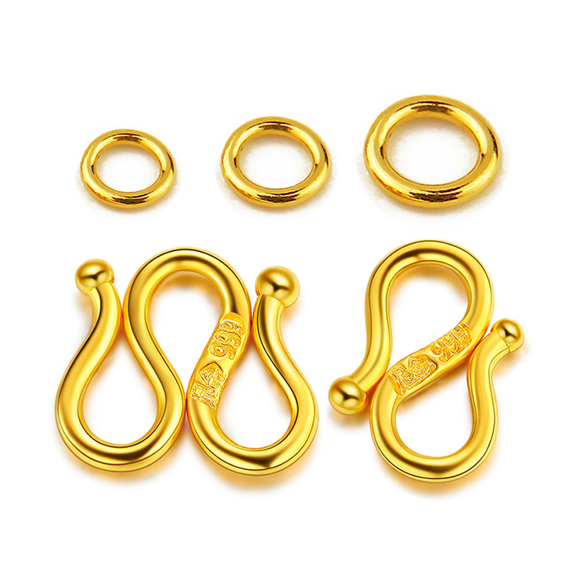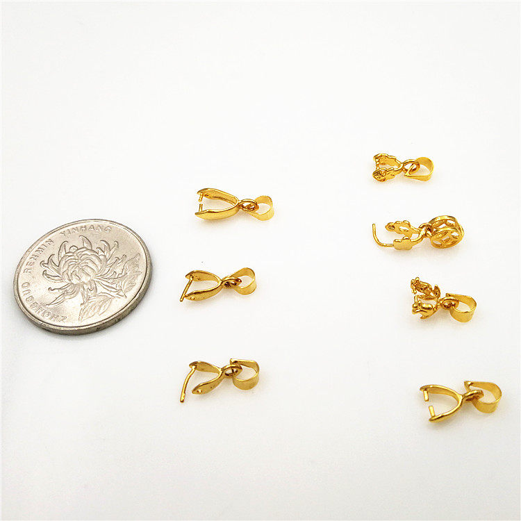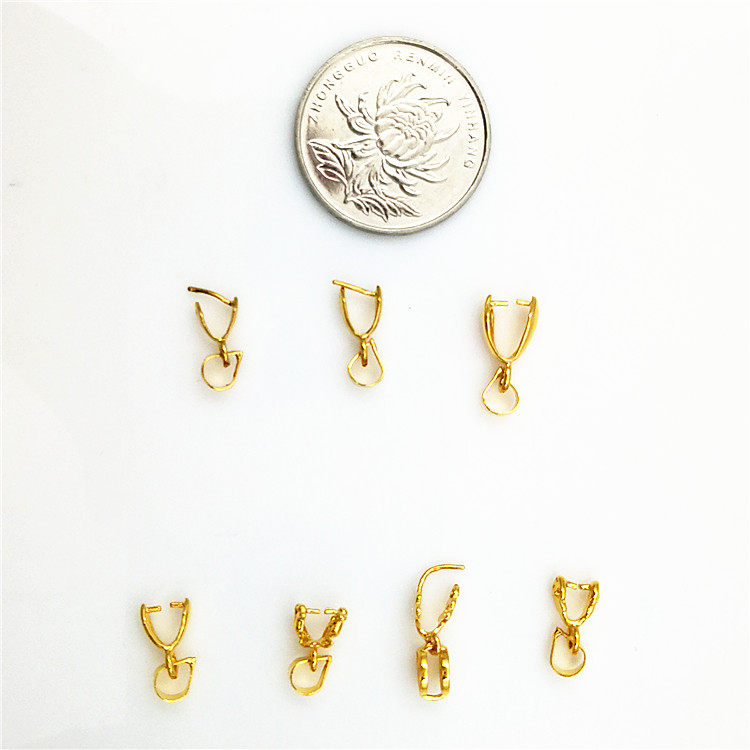 DIY沙金吊坠卡扣项链吊坠扣头金镶玉金币镀金黄色连接处固定头