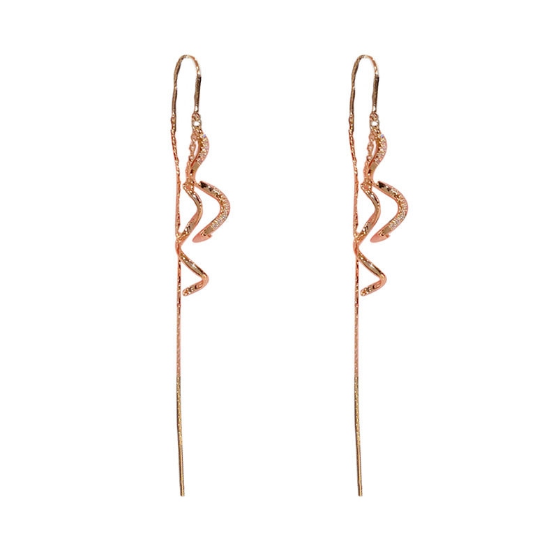 上海专柜撤柜18K金色流苏耳环螺旋设计感锆石耳线个性长款耳饰925