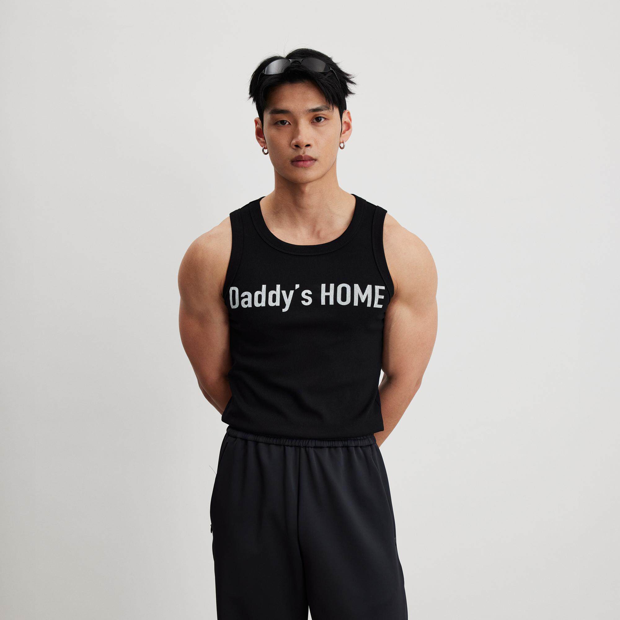 AFTERGLOW标语高克重弹力螺纹背心 修身做旧印花运动健身汗背心