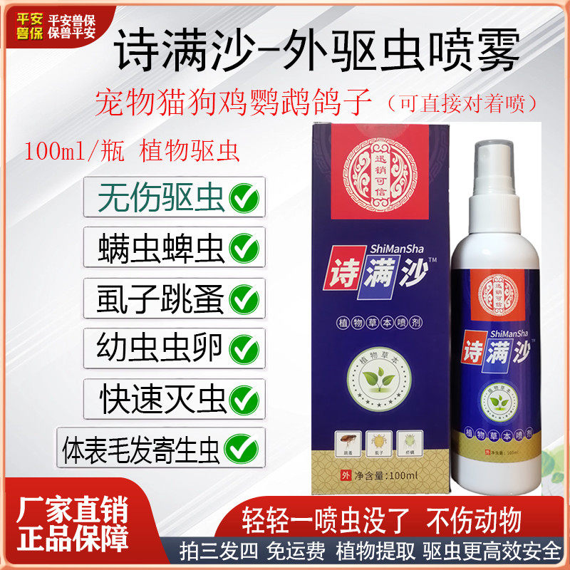 诗满沙宠物狗猫鸡犬鹦鹉赛鸽驱虫喷雾蜱虫跳蚤虱子螨虫体外寄生虫