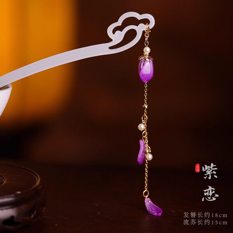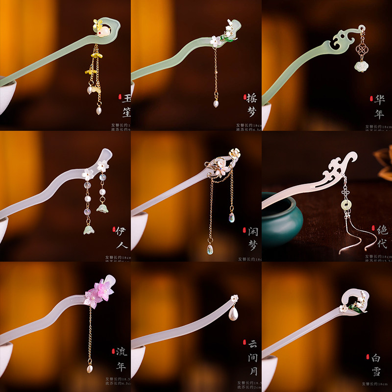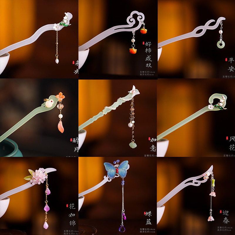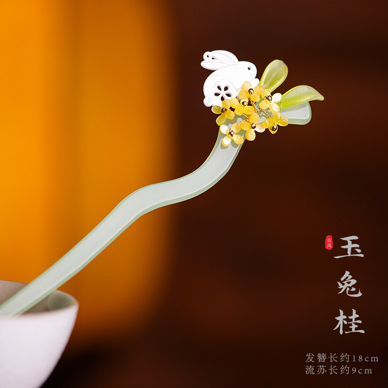 苏韵 醋酸仿白玉花朵发簪古风汉服百搭发饰气质写真旗袍发钗配饰
