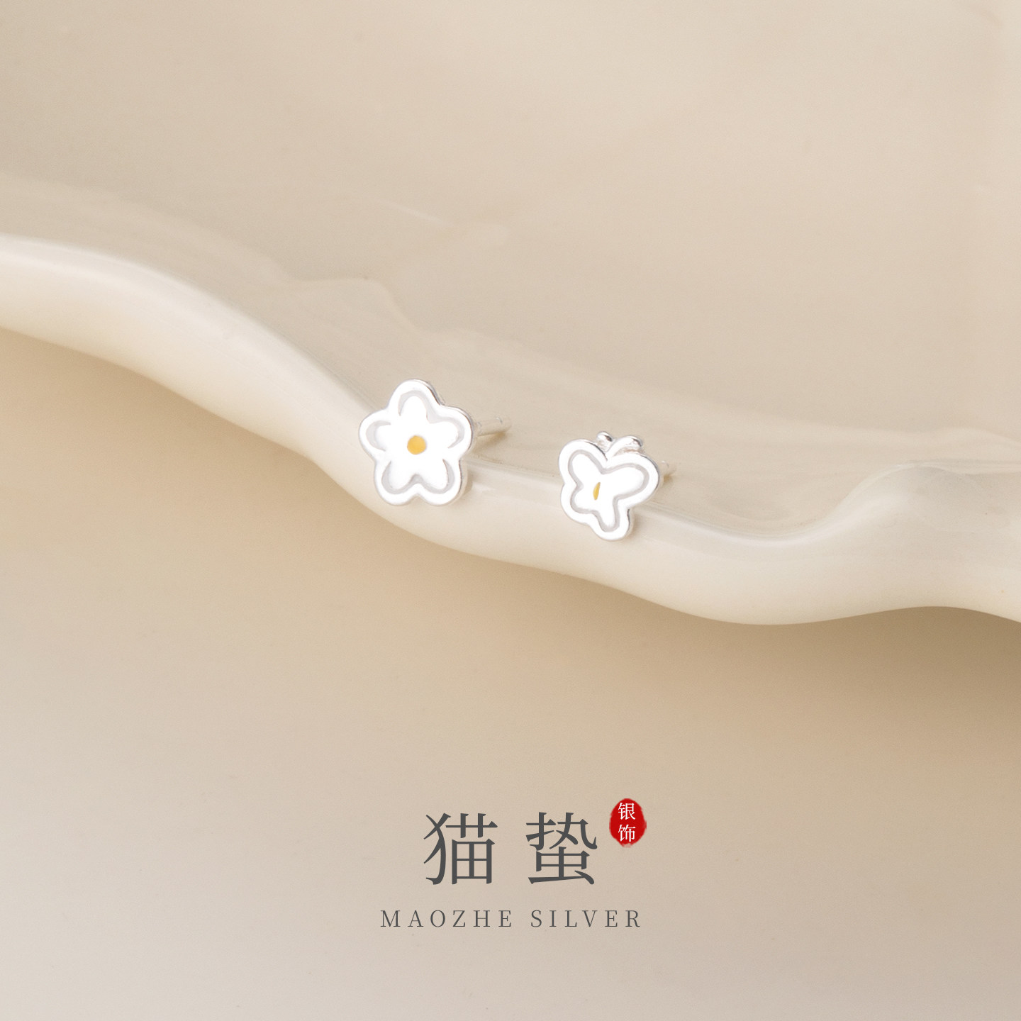 猫蛰S999足银小花朵蝴蝶耳钉小清新甜美可爱文艺少女心纯银耳饰品