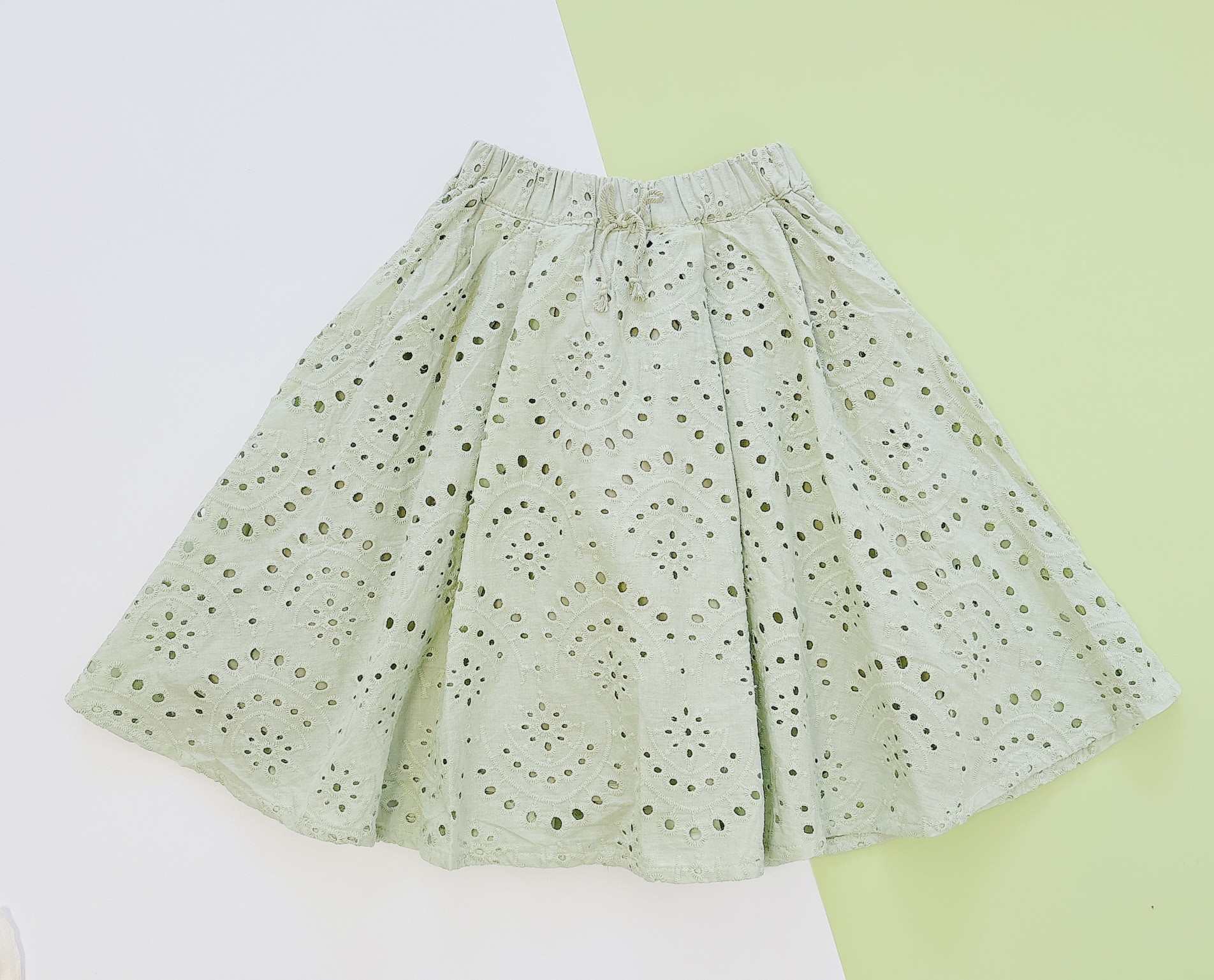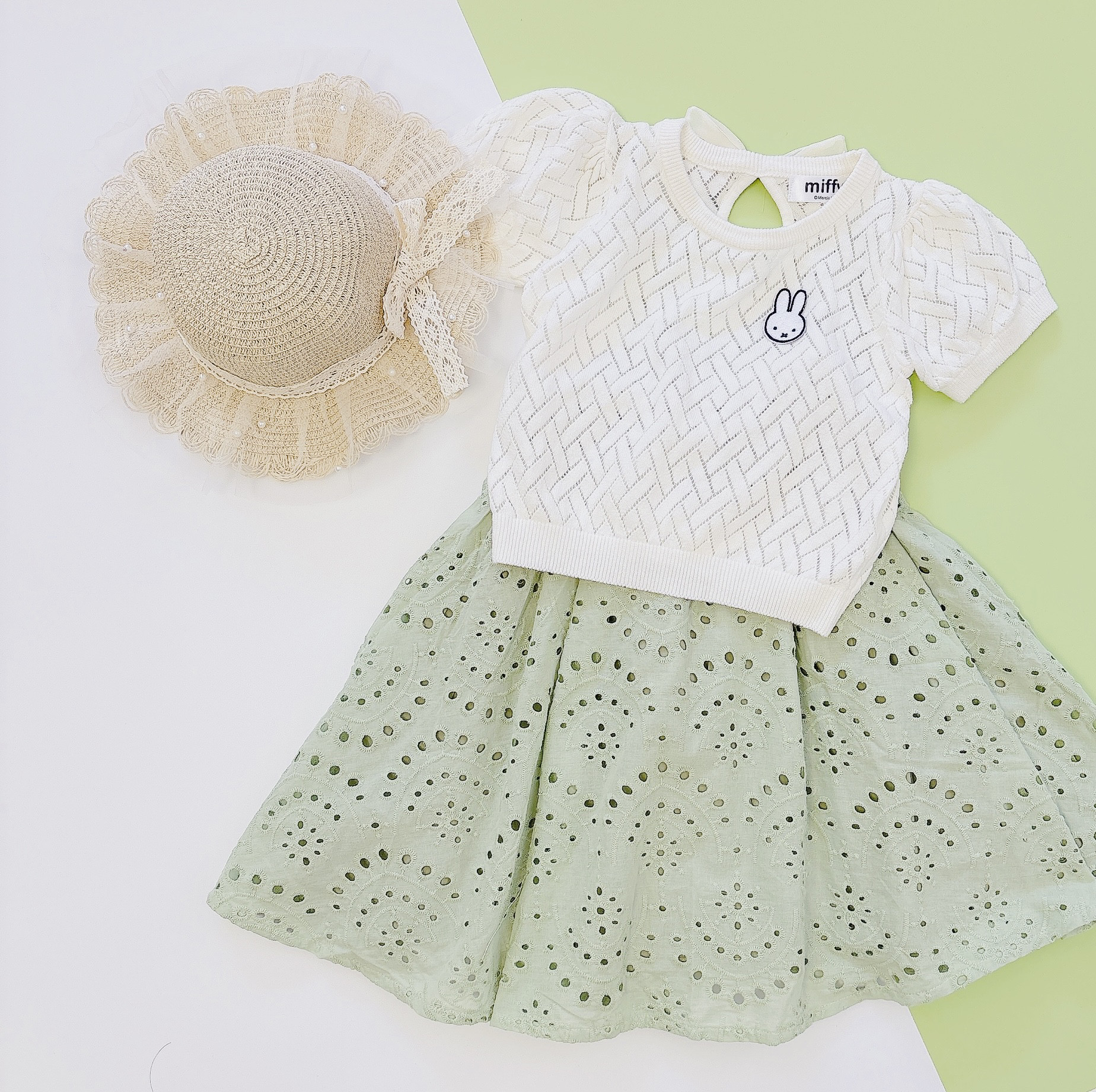 日单mif米菲25新款夏季女童女宝T恤公主袖半身裙刺绣镂空半裙套装