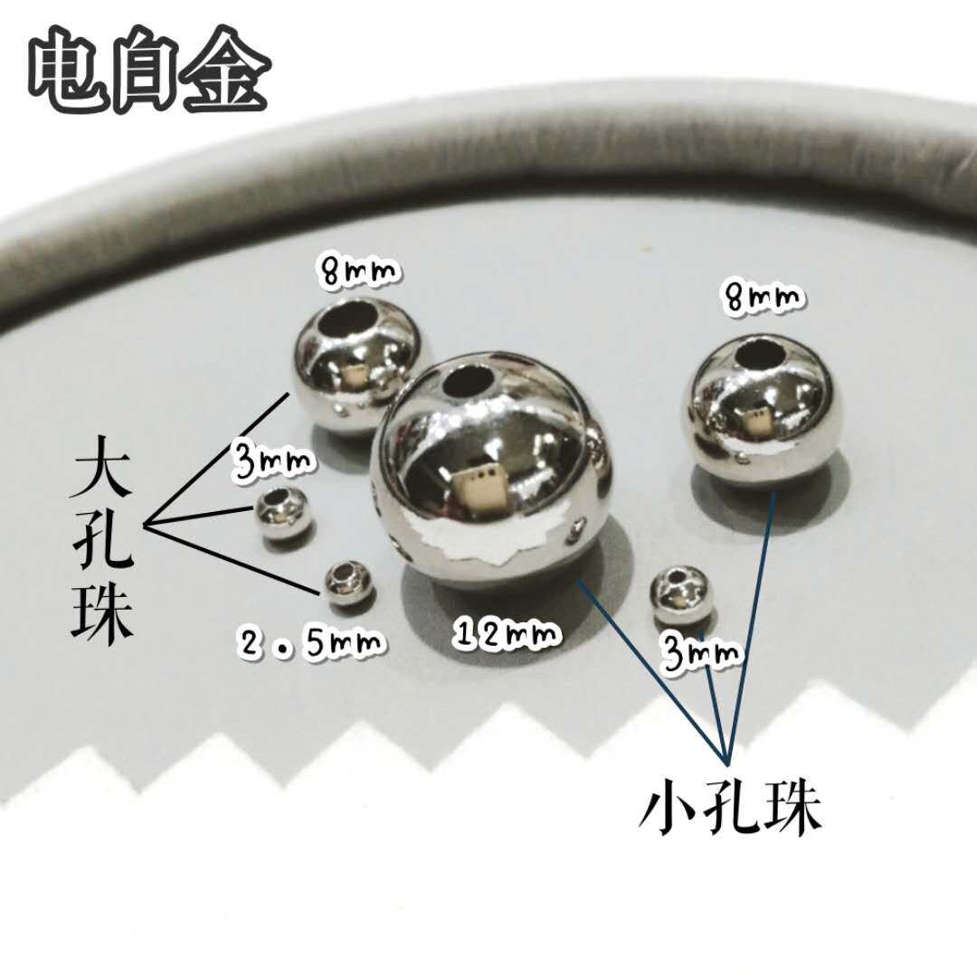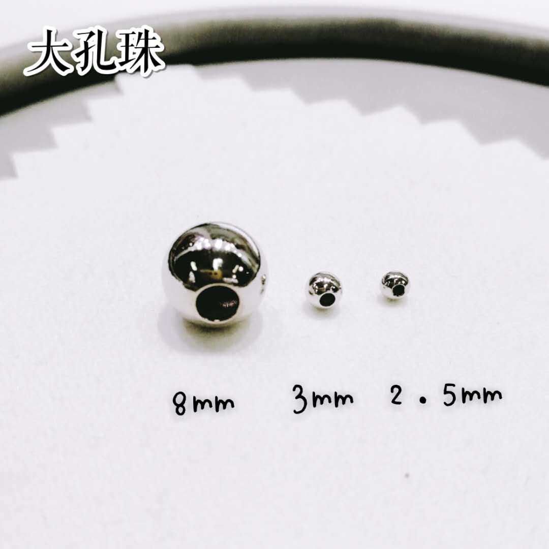 雅庄 925纯银DIY配件 电镀白金小孔大孔银珠光珠佛珠1个