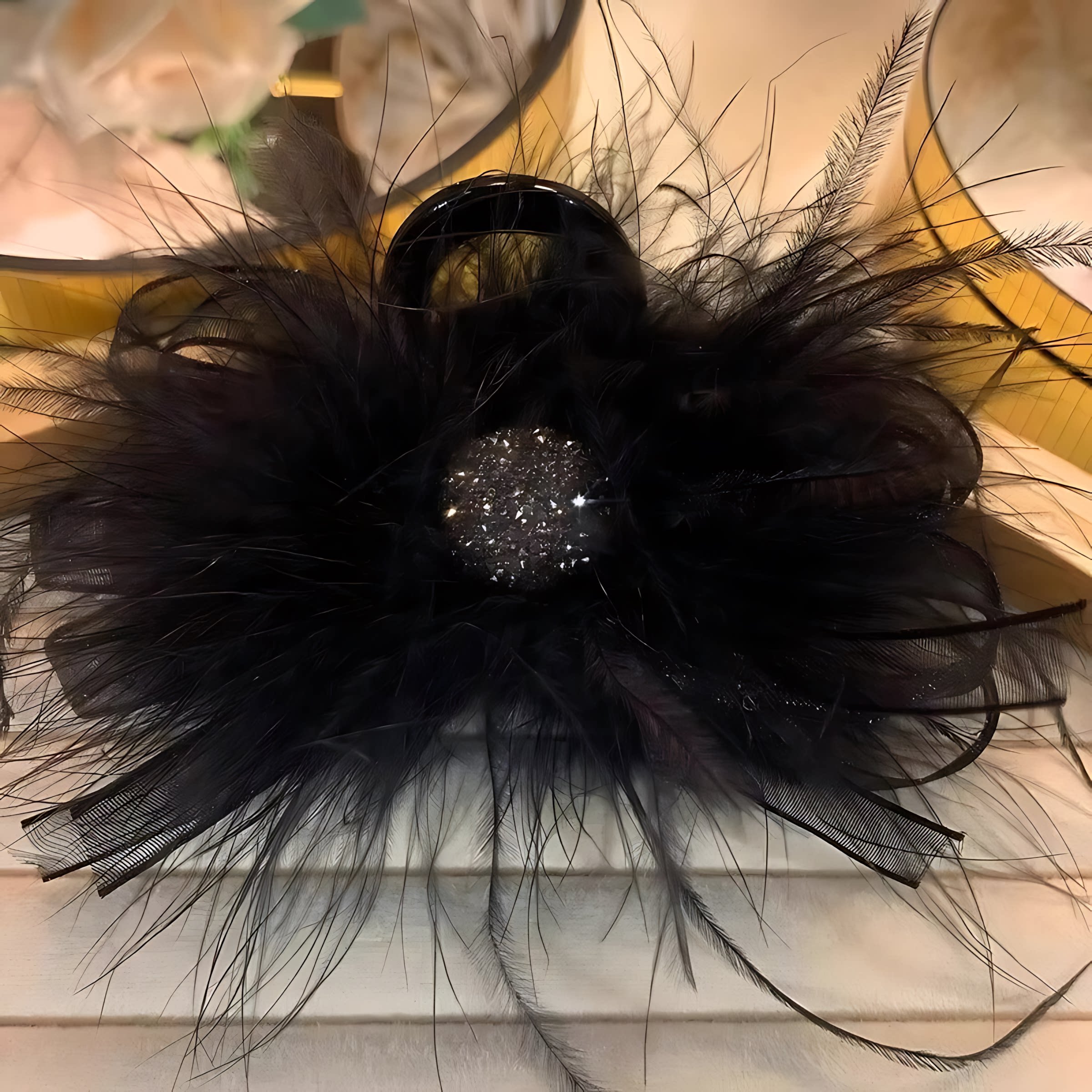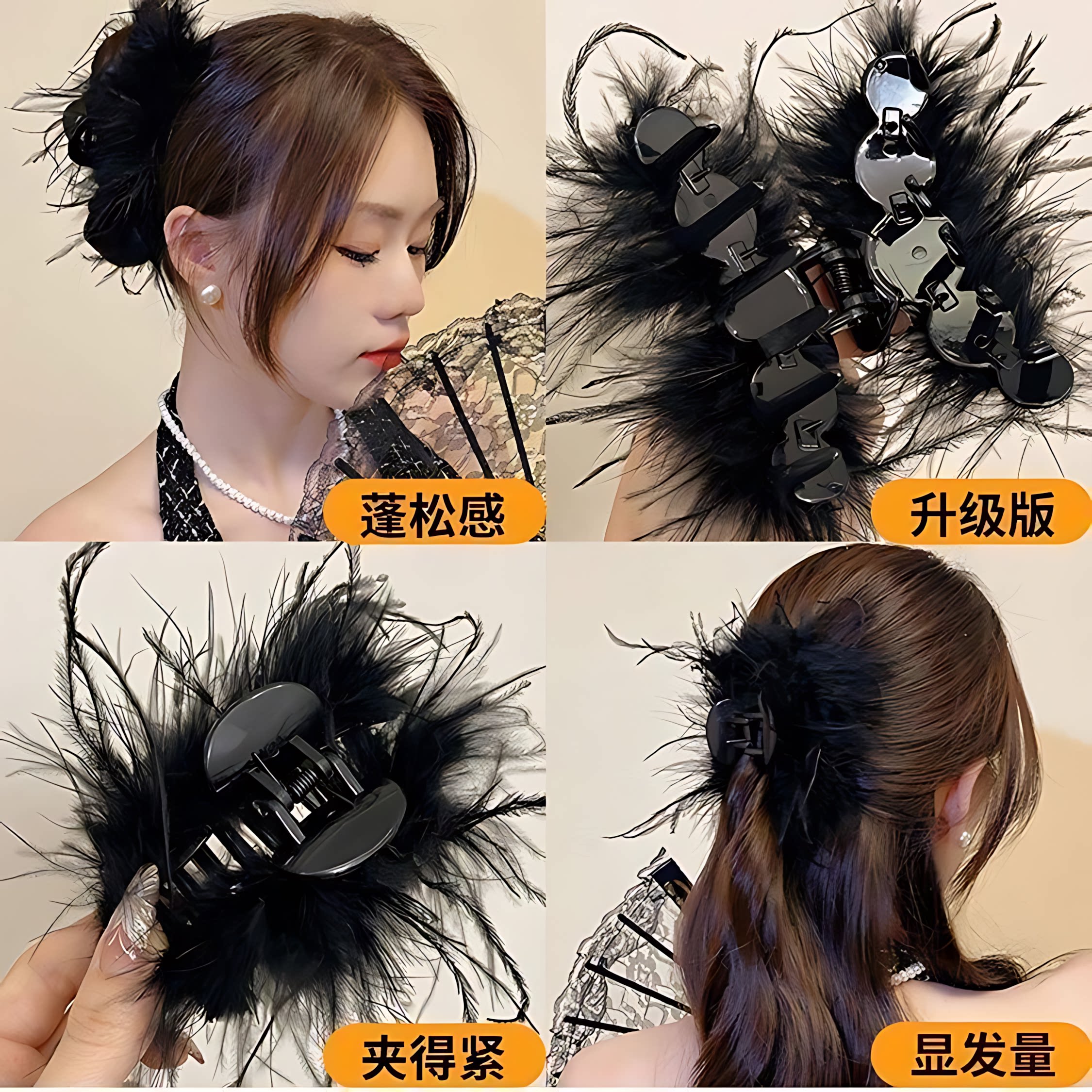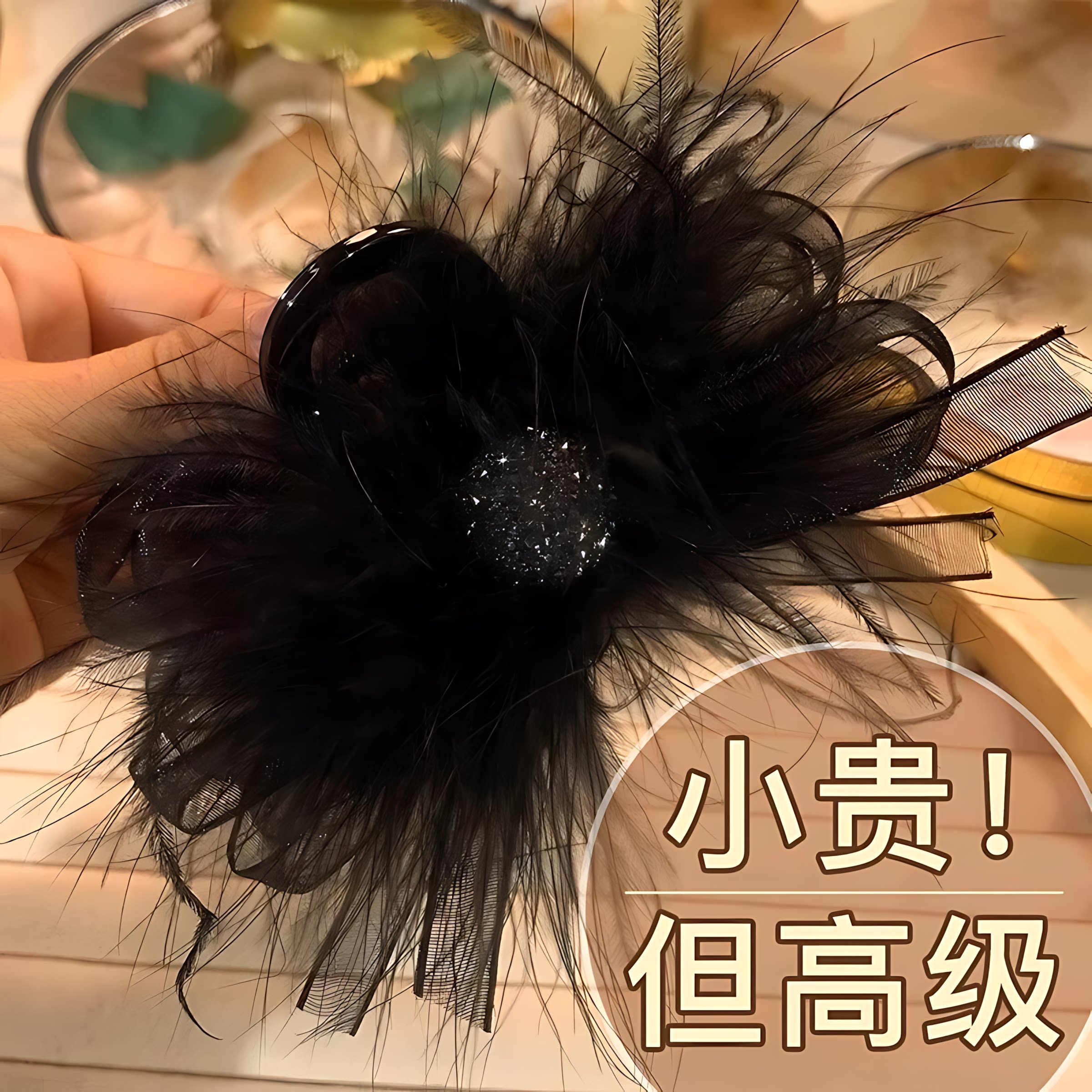 蓬松发卡欧根纱蝴蝶结羽毛8厘米抓夹气质时尚浪漫毛毛抓夹秋冬款
