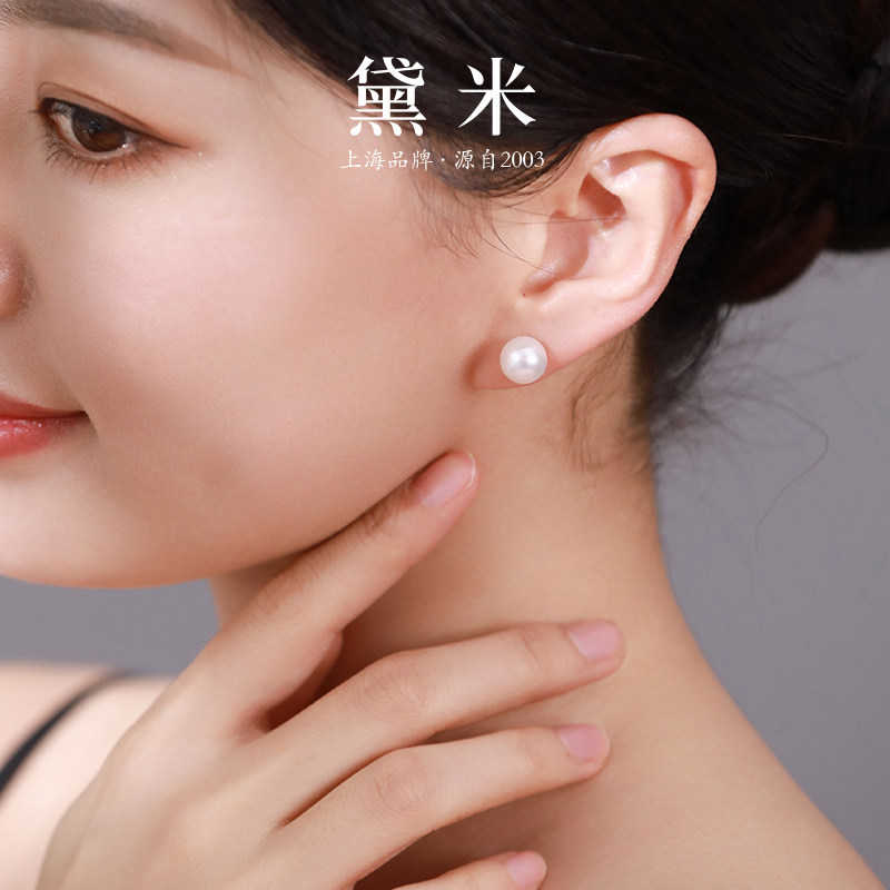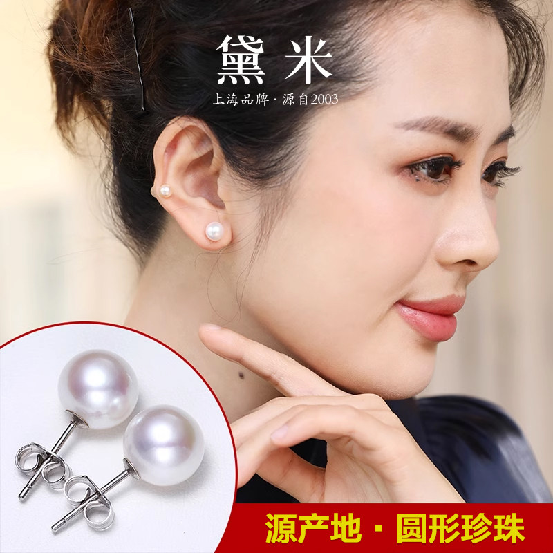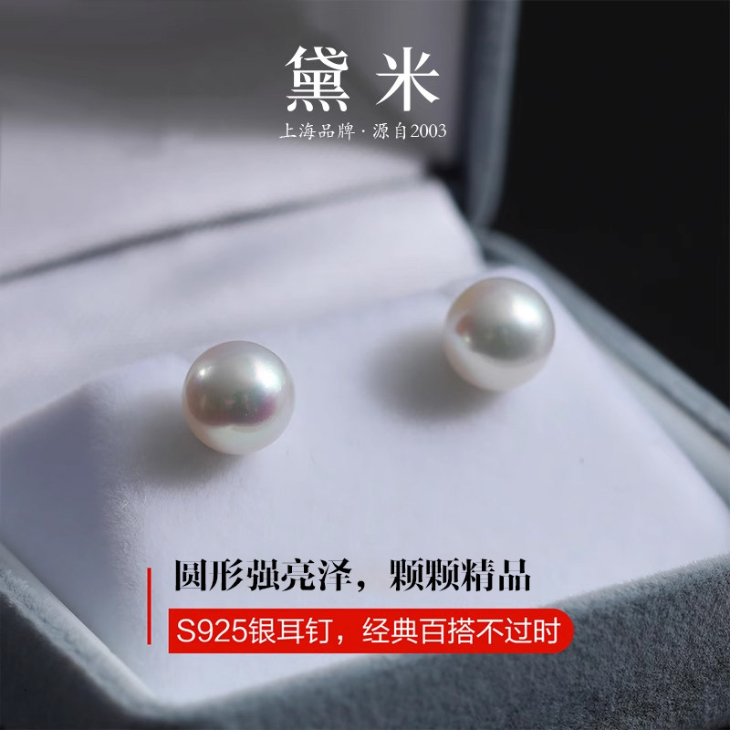 黛米珠宝 至简 S925银珍珠耳钉圆形素钉媲美akoya耳环女耳饰礼物