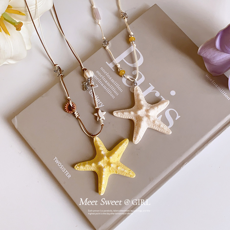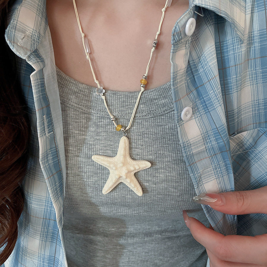多巴胺长款贝壳黄色海星项链女饰品毛衣链海边配饰衣服装饰星星