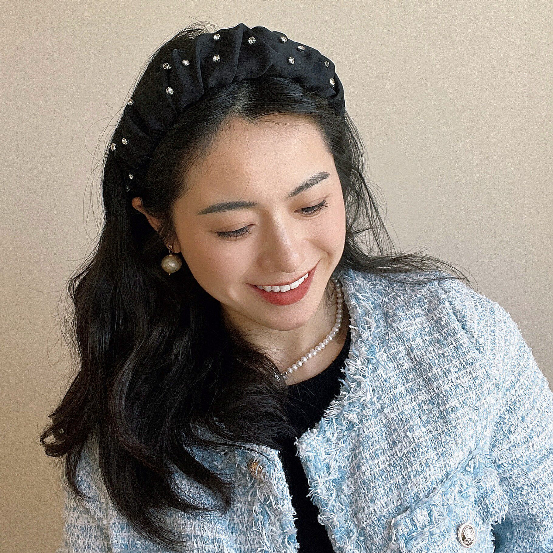 晚星发箍钻钻2024新款高级百搭宽边发箍时尚简约通勤高颅顶发饰女