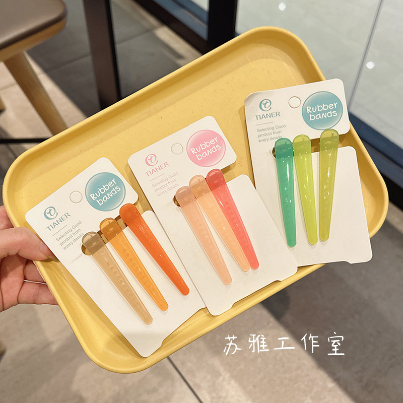 无痕发夹侧边刘海夹女果冻色亚克力发卡洗脸化妆夹子鸭嘴夹一字夹