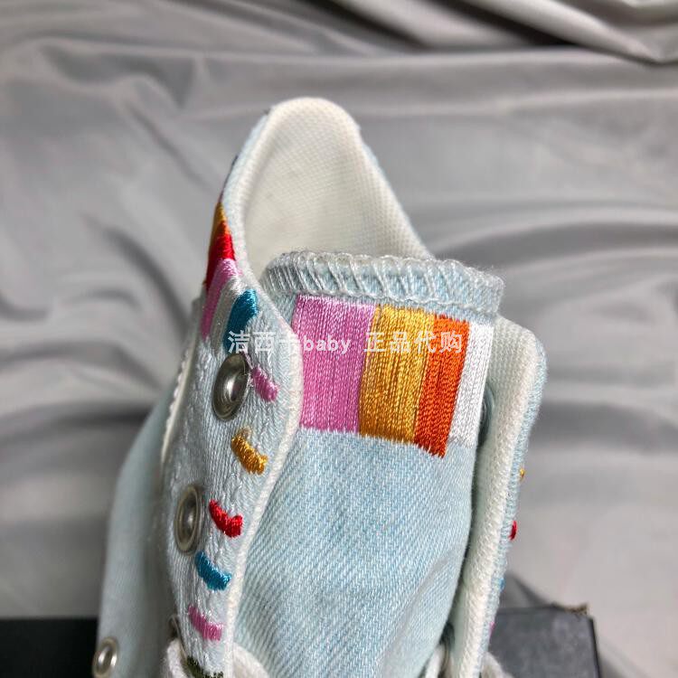 酷动城正品converse匡威 民族风彩虹刺绣灰白蓝高帮帆布鞋567991C
