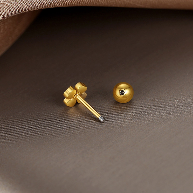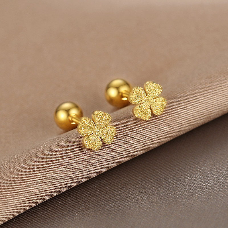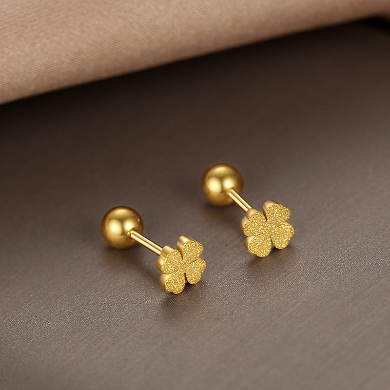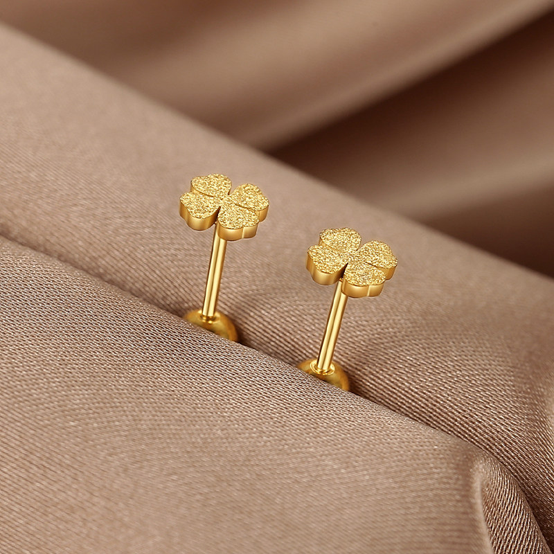 1对 磨砂四叶草金色小耳钉女生养耳洞高级感精致气质小众耳扣饰品