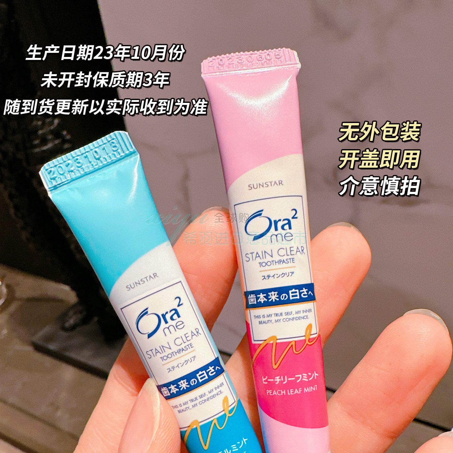 便携装牙膏 旅行bi备 日本Ora2皓乐齿亮白净色去口气清新薄荷牙膏