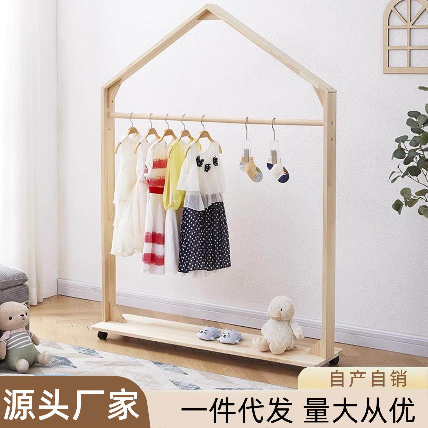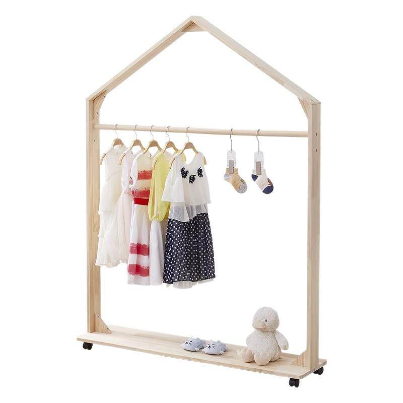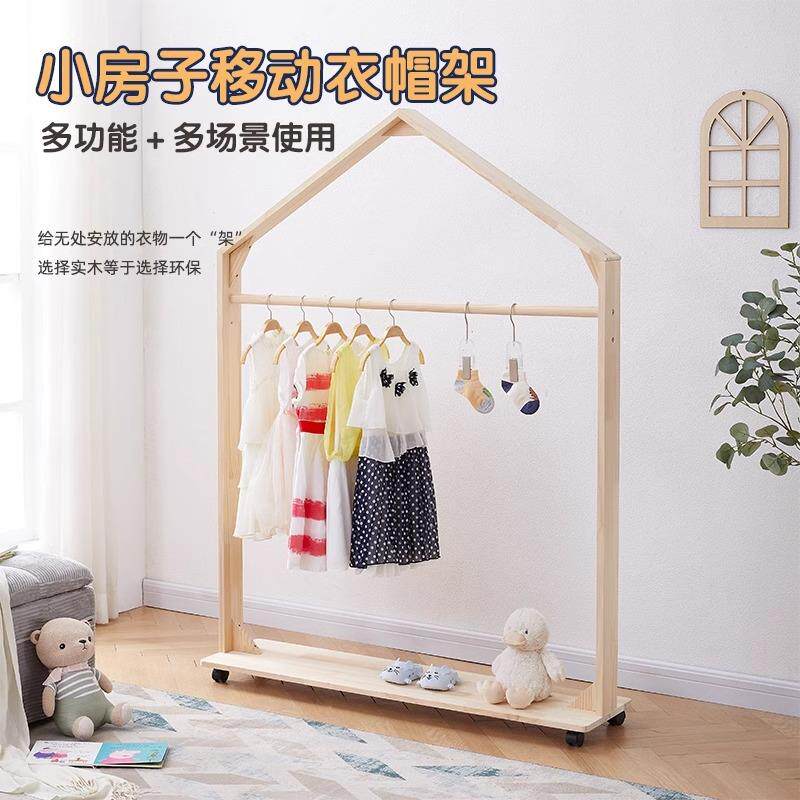 卧室落挂衣架实木帽顶天立地地衣架家用衣服衣收纳架架可移动房子