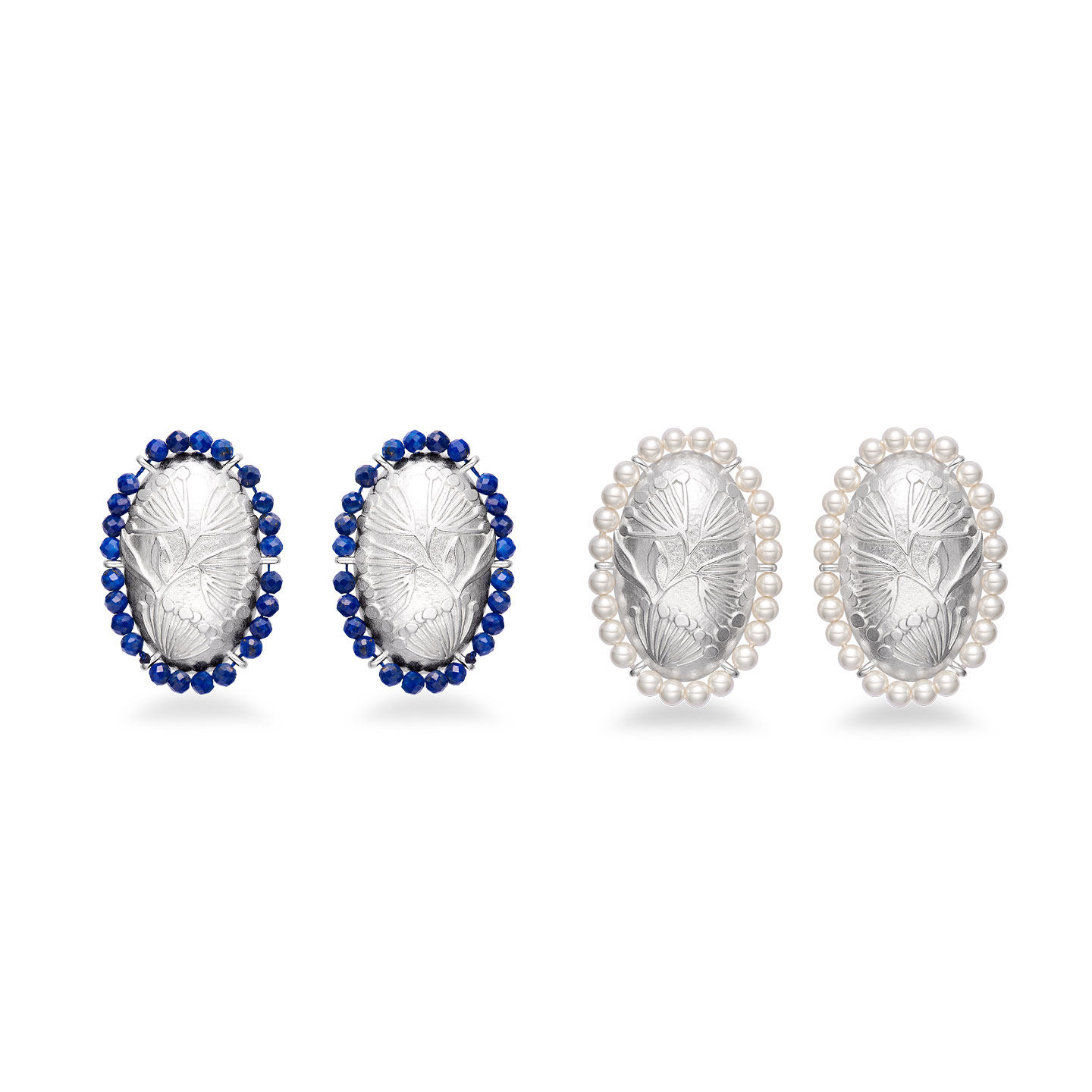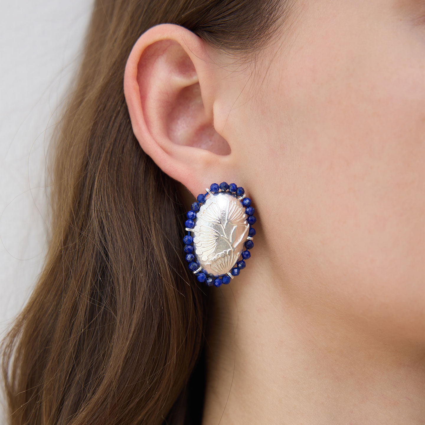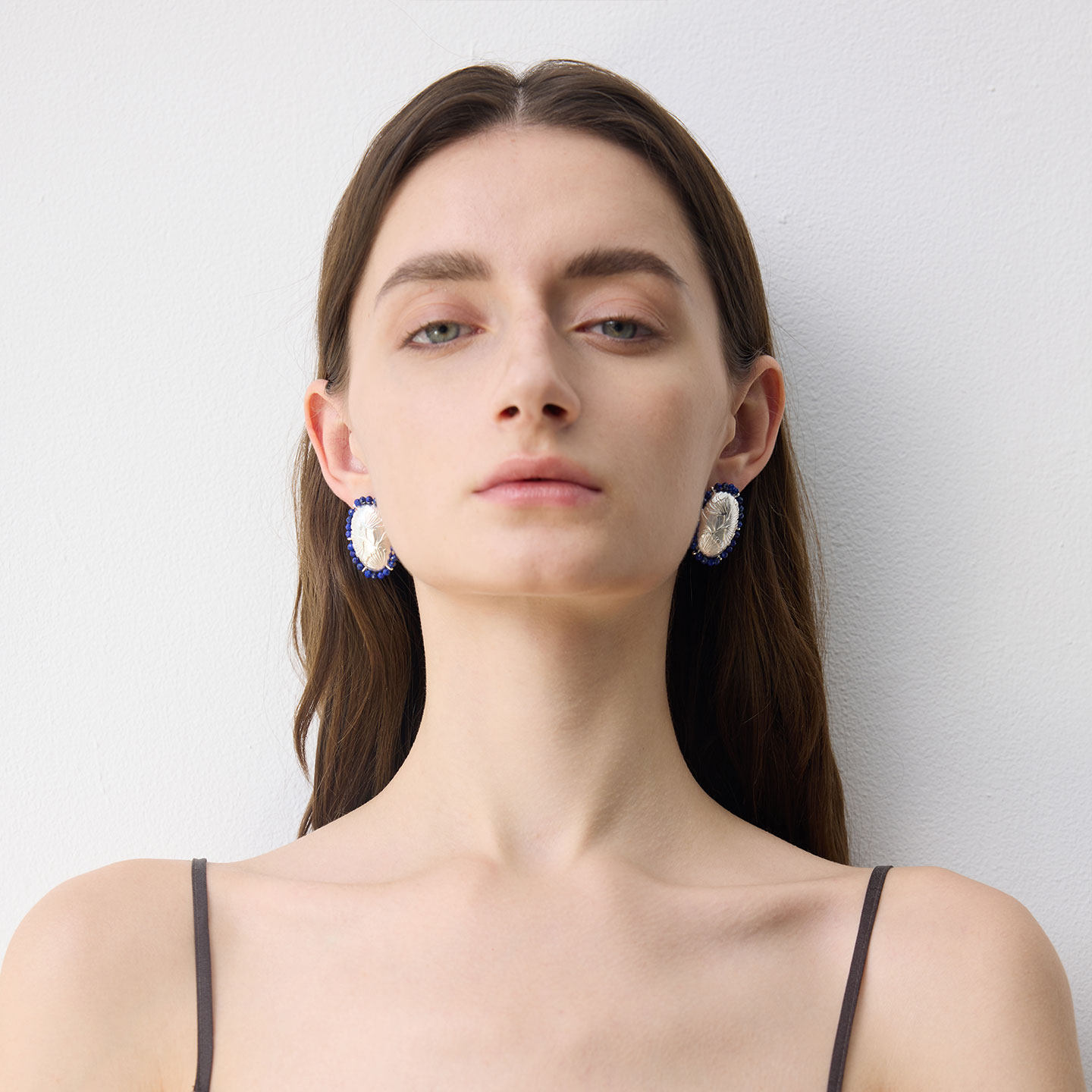 ZHAO ACAP原创设计莳萝青金石珍珠椭圆耳钉