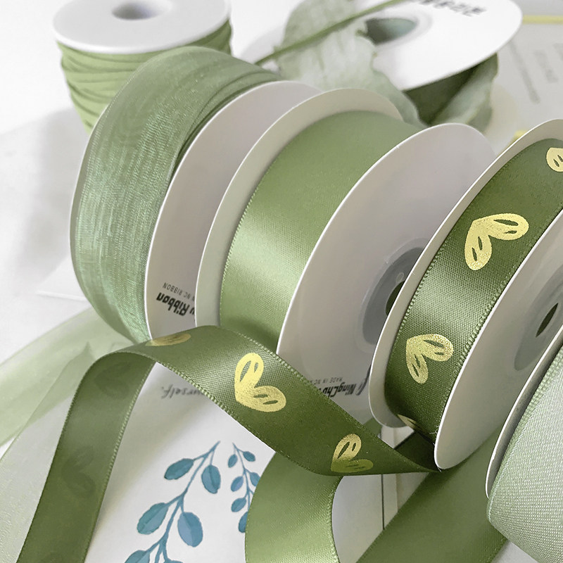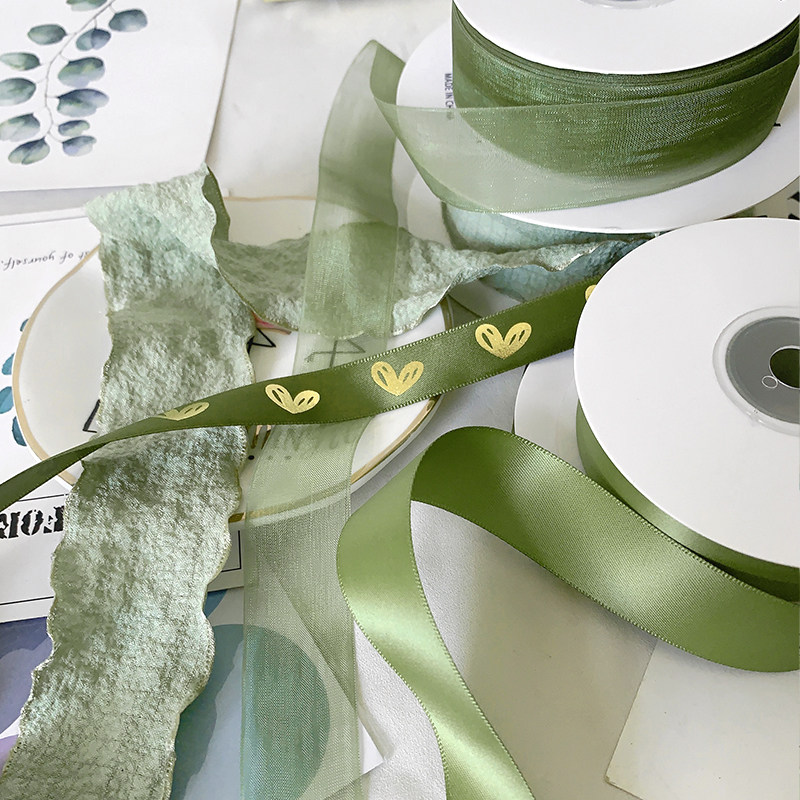 春夏系列森系绿丝带花束礼品包装纱织带彩带DIY手工缎带蛋糕礼盒