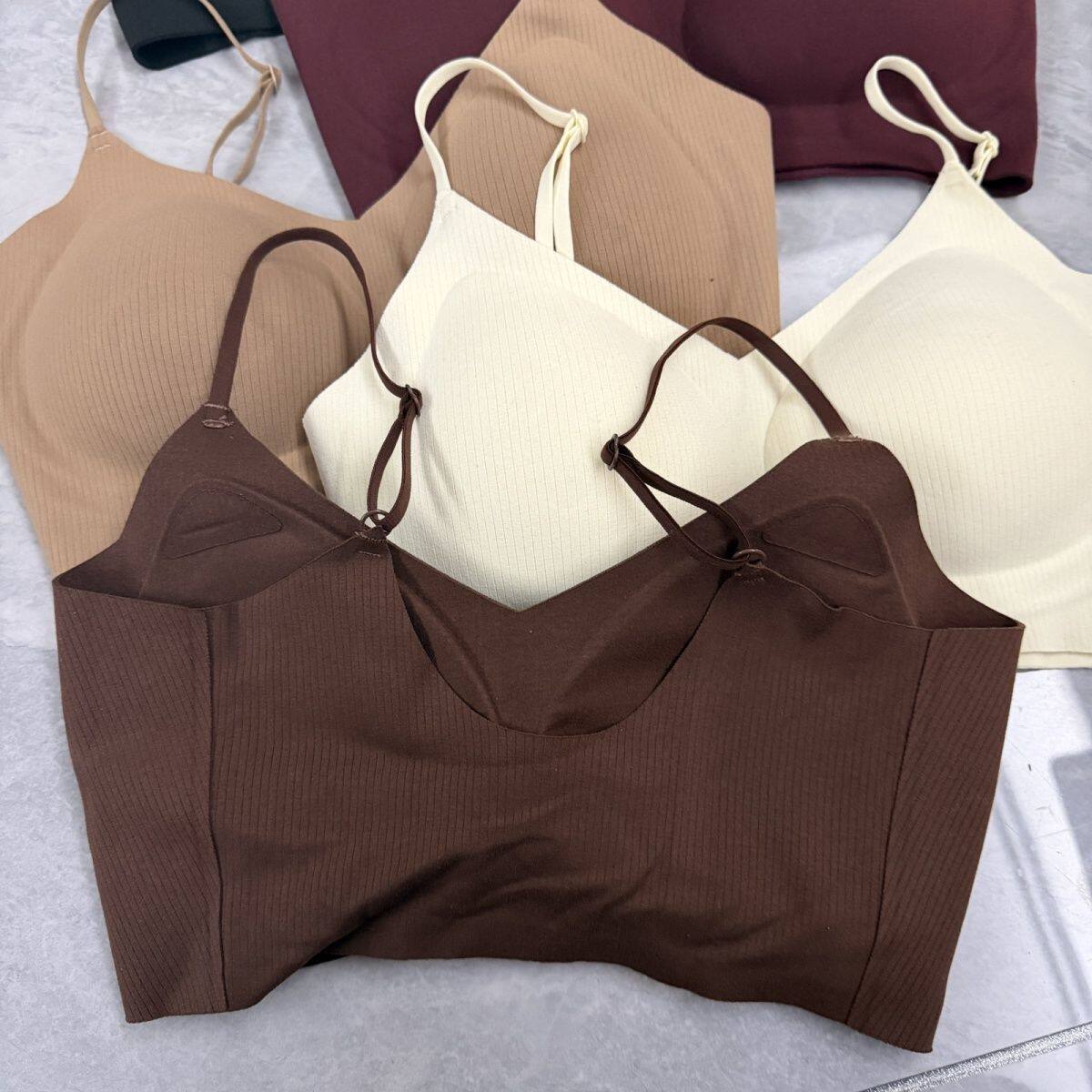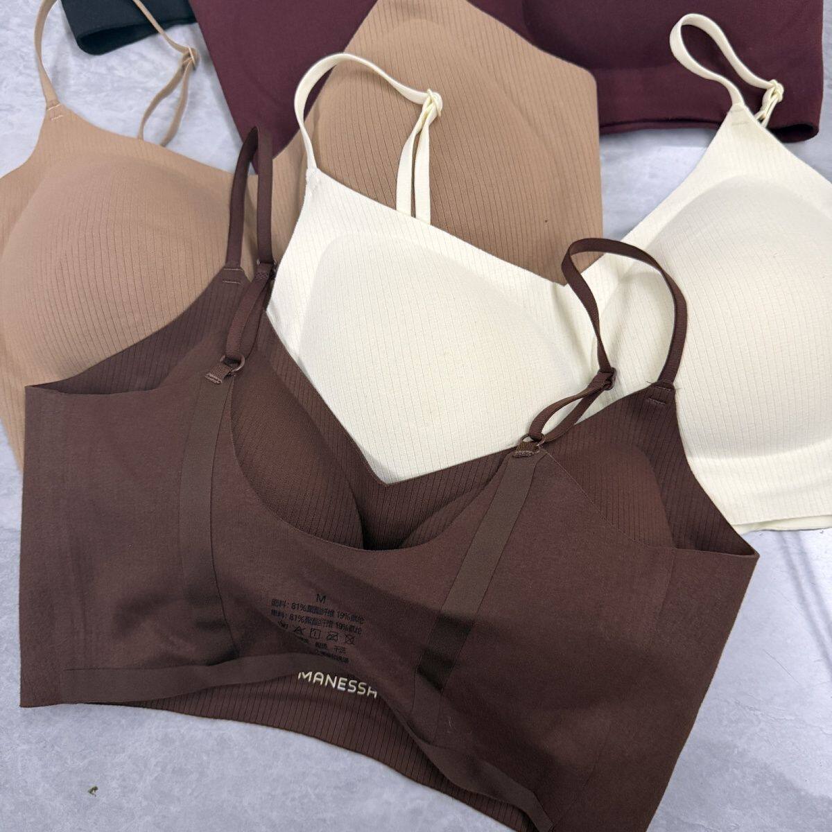 曼家高货新款双面磨毛夹层隐形无痕细肩带无钢圈提拉聚拢舒适美背