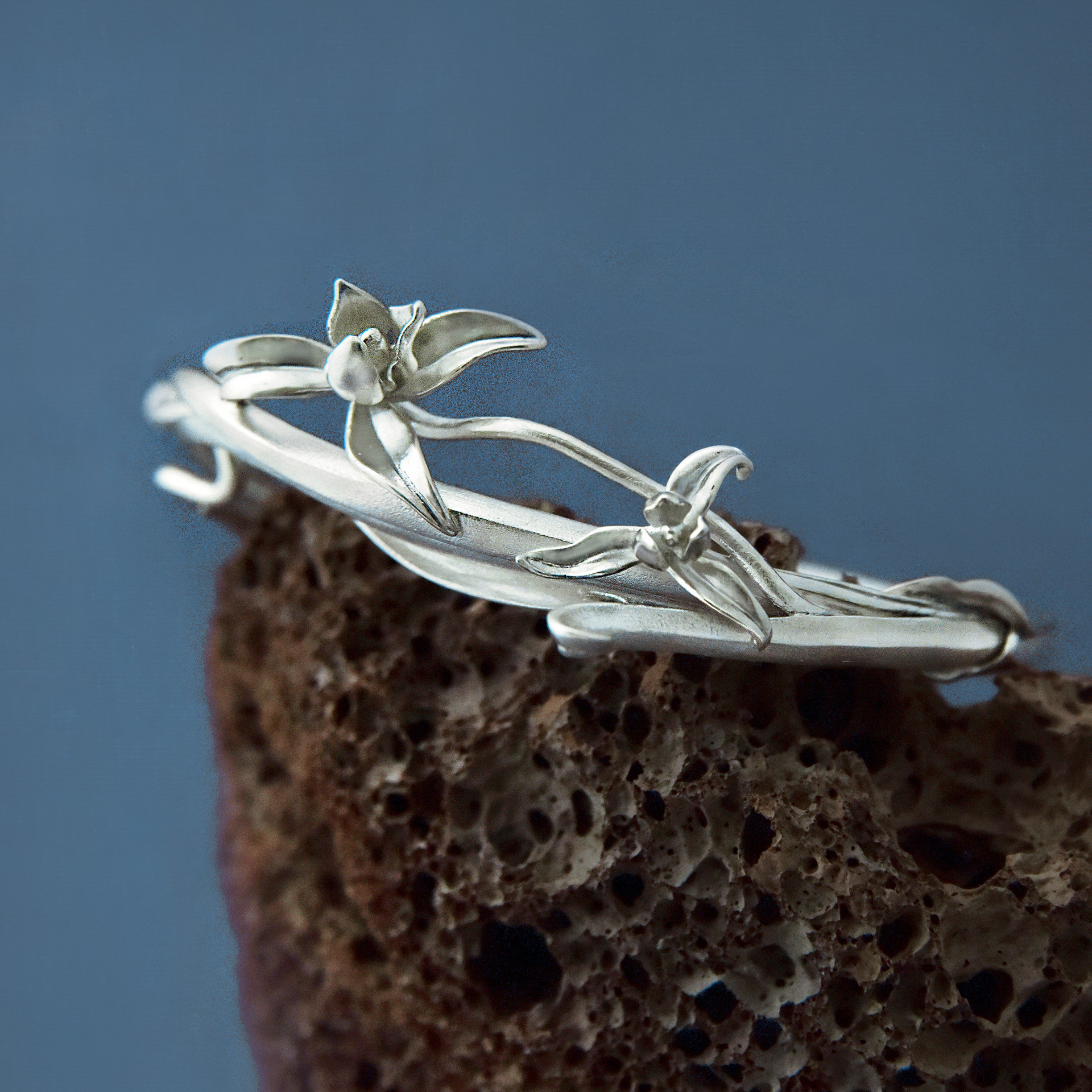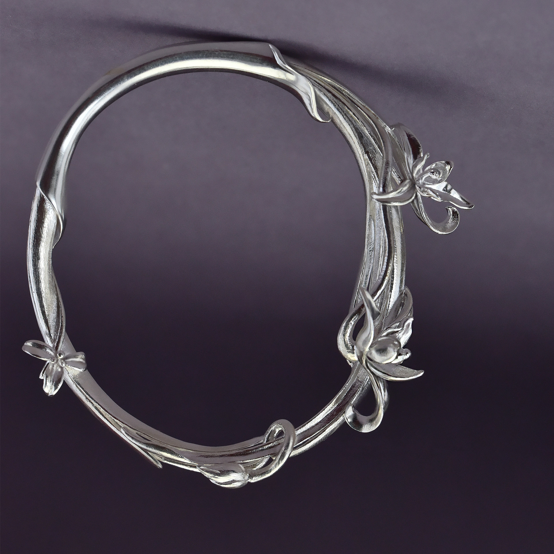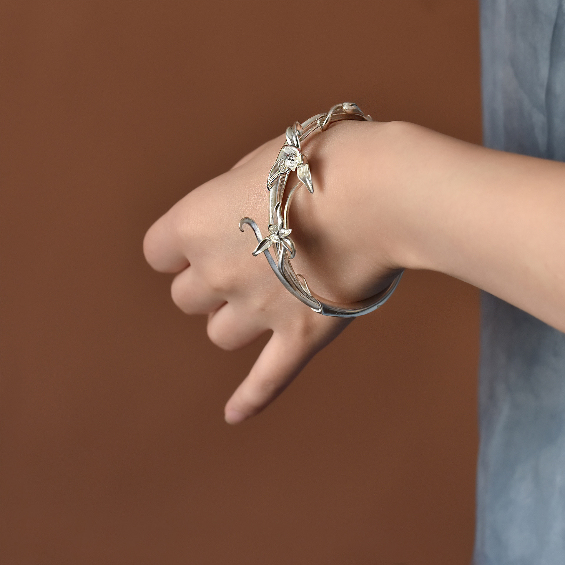 《寻兰》九九倾城原创/手工立体感兰草银手镯/国风诗意足银手镯女