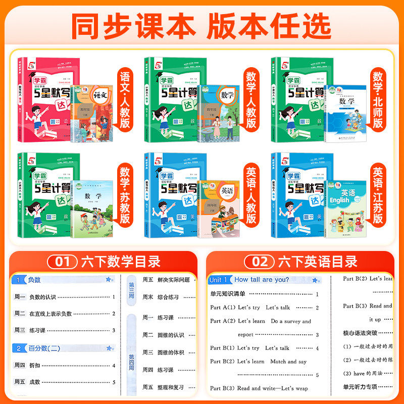 2026春小学5星学霸默写计算达人一二三四五六年级上下册语文数学英语人教版北师江苏教版同步训练口算天天练练习册能手小达人五星