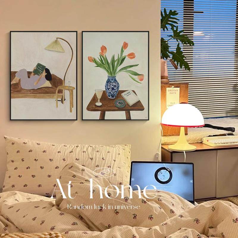 装饰画挂画奶油原木风卧室床头画酒店样板间房间壁画餐厅装饰画