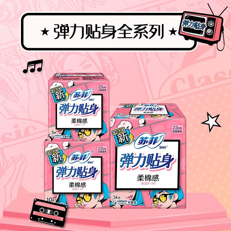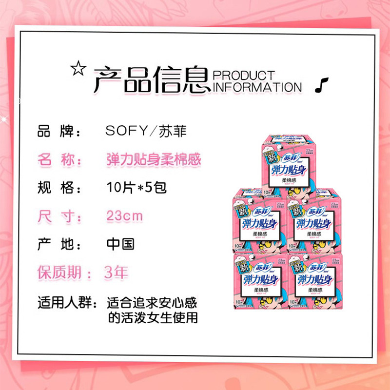 苏菲卫生巾230mm绵柔纤巧弹力贴身日用姨妈巾10片装组合正品