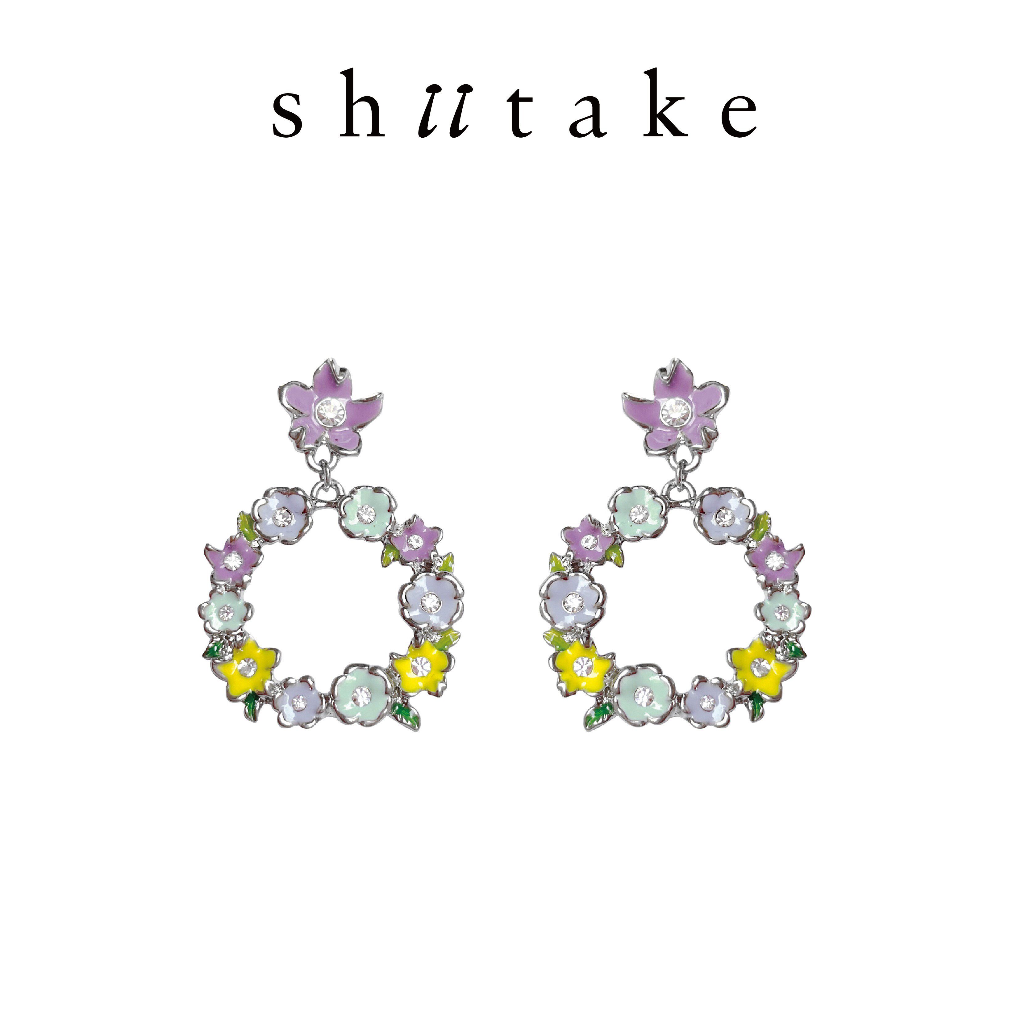 Shiitake 绽放系列法式浪漫花环珐琅滴釉小花耳钉