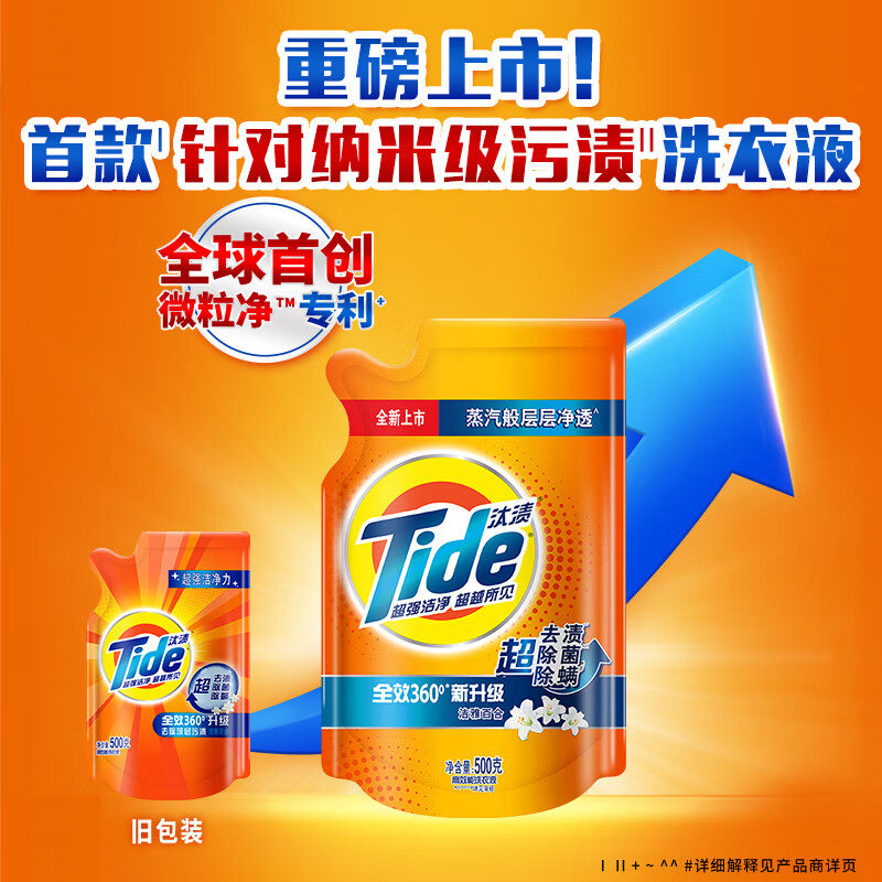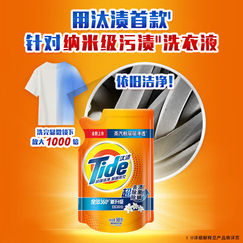 汰渍全效360度洁雅百合洗衣液去渍留香除菌除螨层层净透实惠装