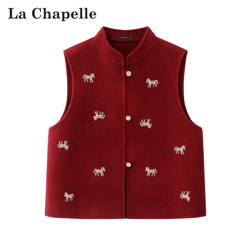 拉夏贝尔/La Chapelle春季新款新中式立领小马刺绣外搭无袖马甲女