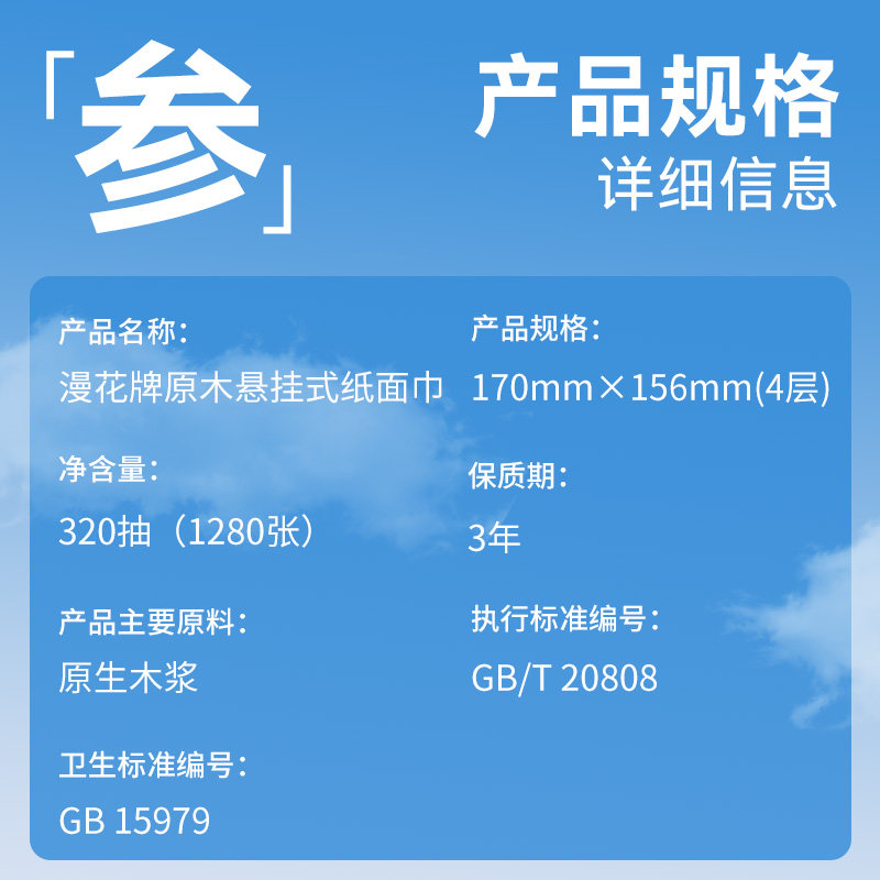 漫花悬挂式抽纸巾家用实惠装餐巾纸面巾纸学生木浆卫生纸柔韧原木